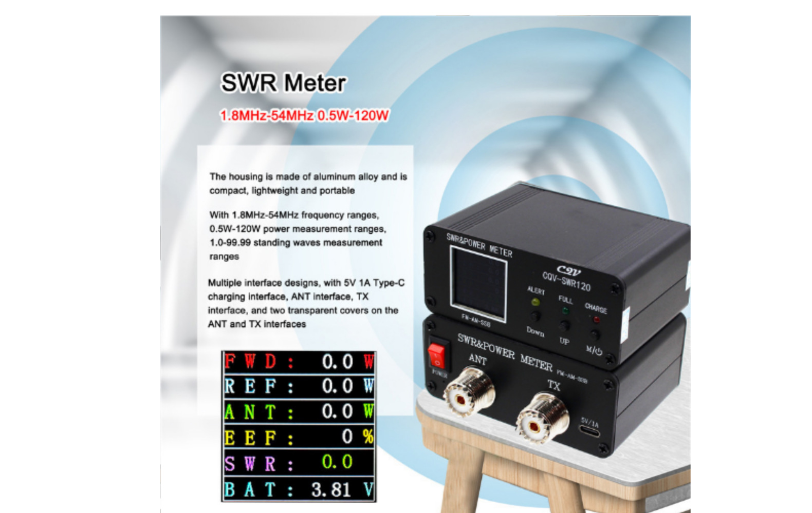 Cqv-Swr120 120W цветной экран цифровой измеритель стоячей волны с функцией тревоги FM-AM-SSB