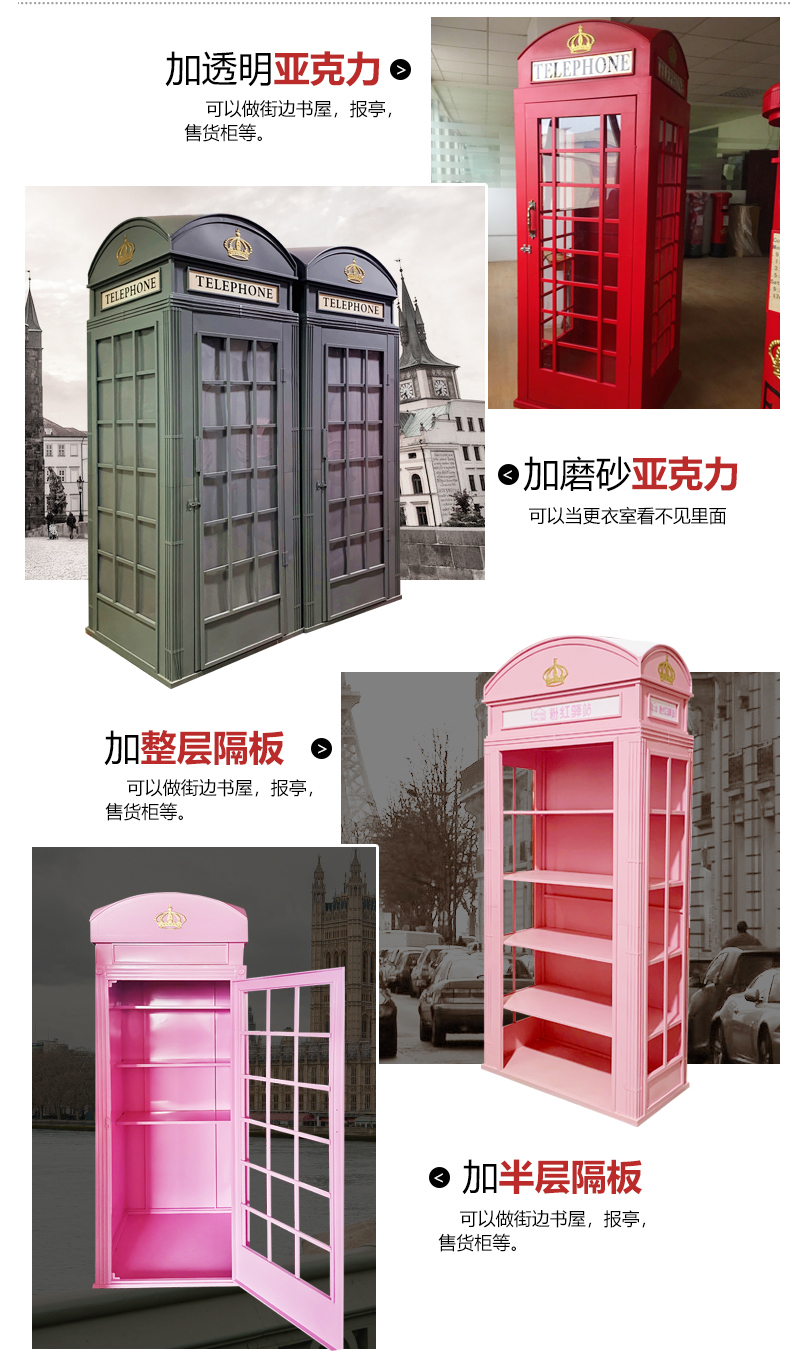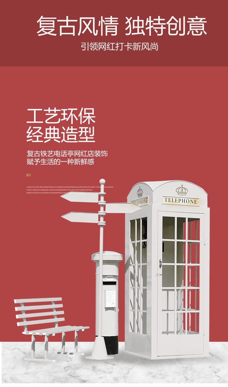 Ретро телефонная будка, модель почтового ящика из железа, украшения для интернет-магазина, дорожные знаки, большие реквизиты для съемок