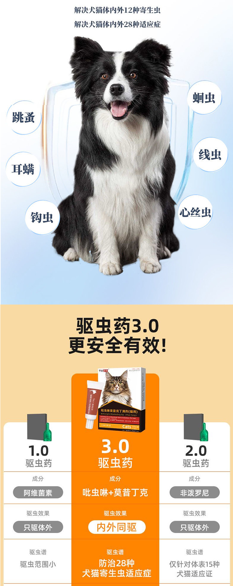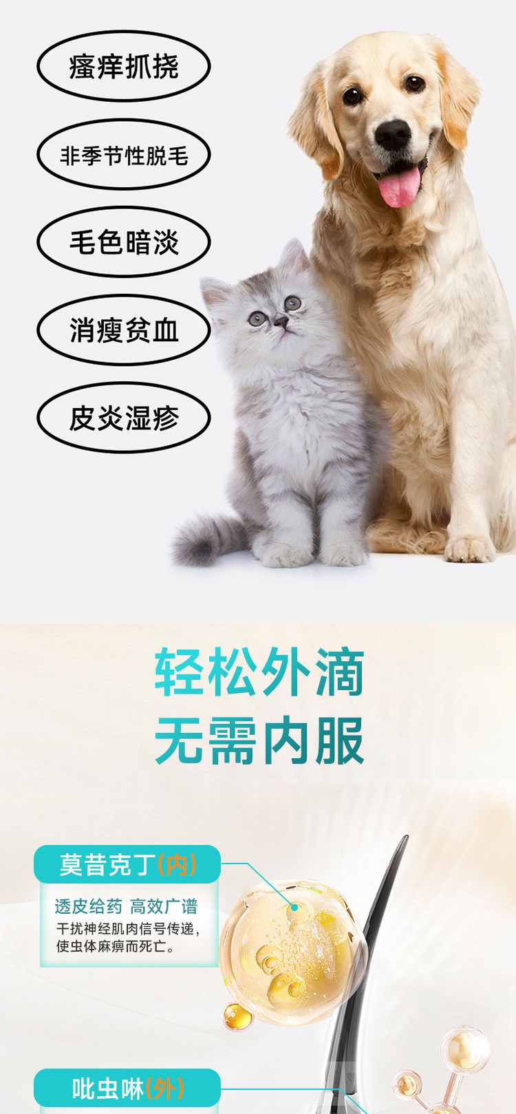 Препарат для дегельминтизации собак и кошек, внутреннее и наружное средство для удаления блох, круглых червей, вшей, капли имидаклоприда