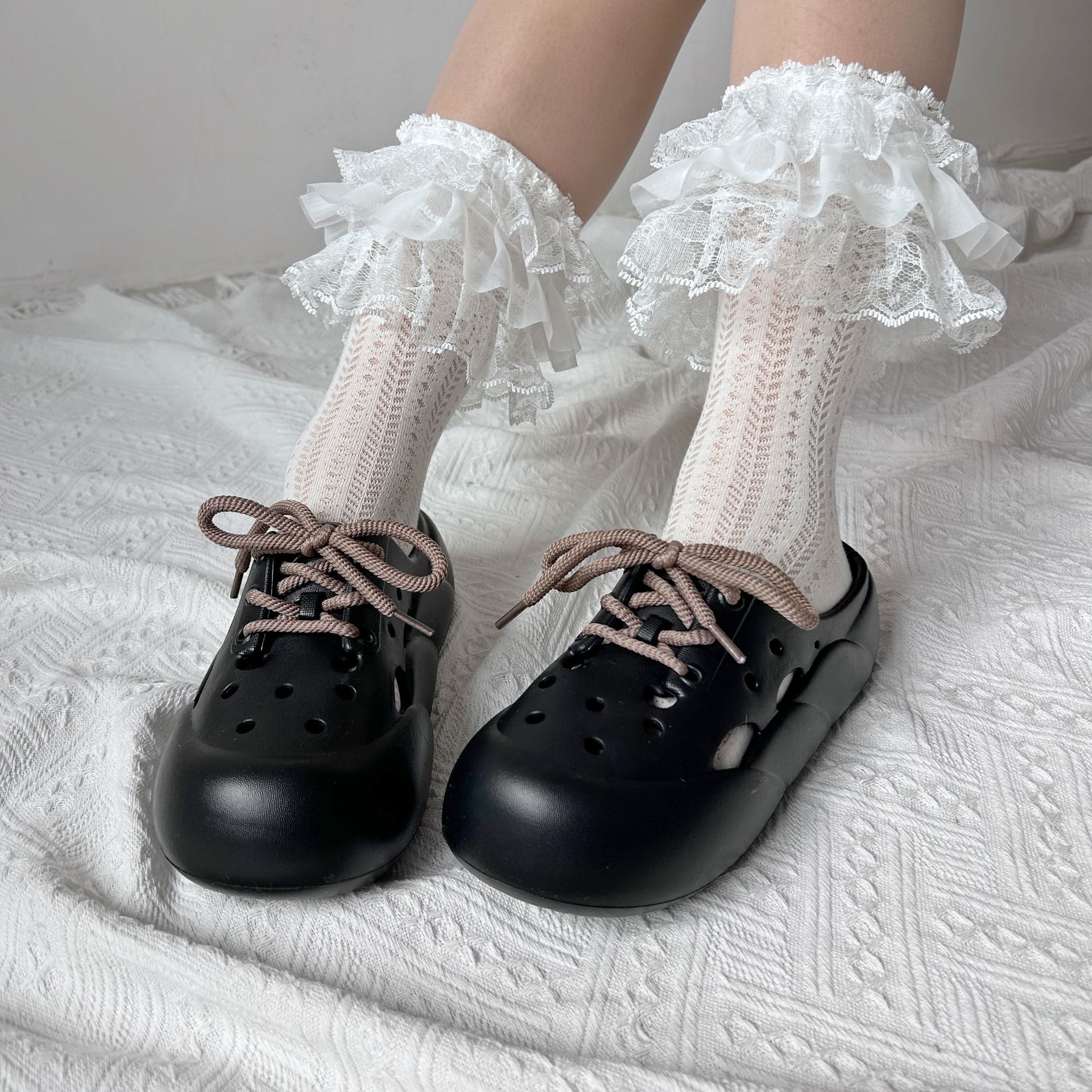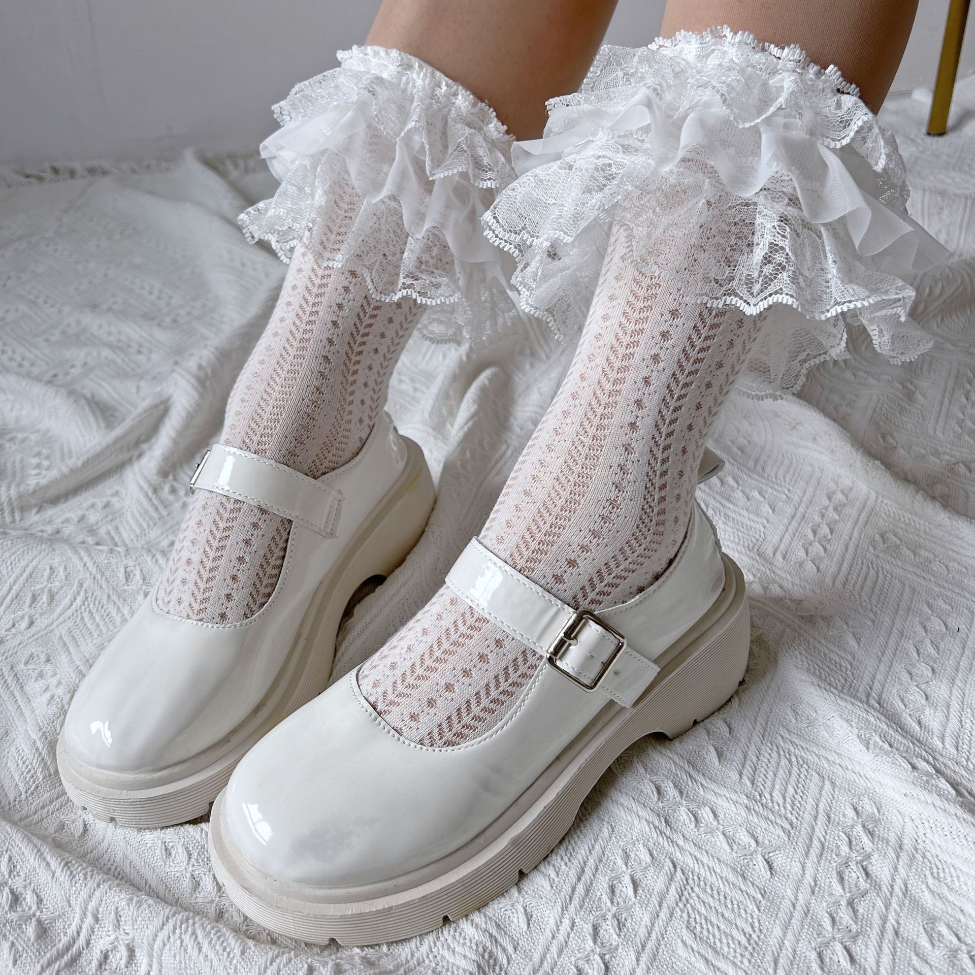 Милые трехслойные кружевные носки в японском стиле, чулки с кружевом для лолиты