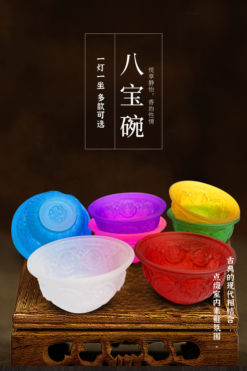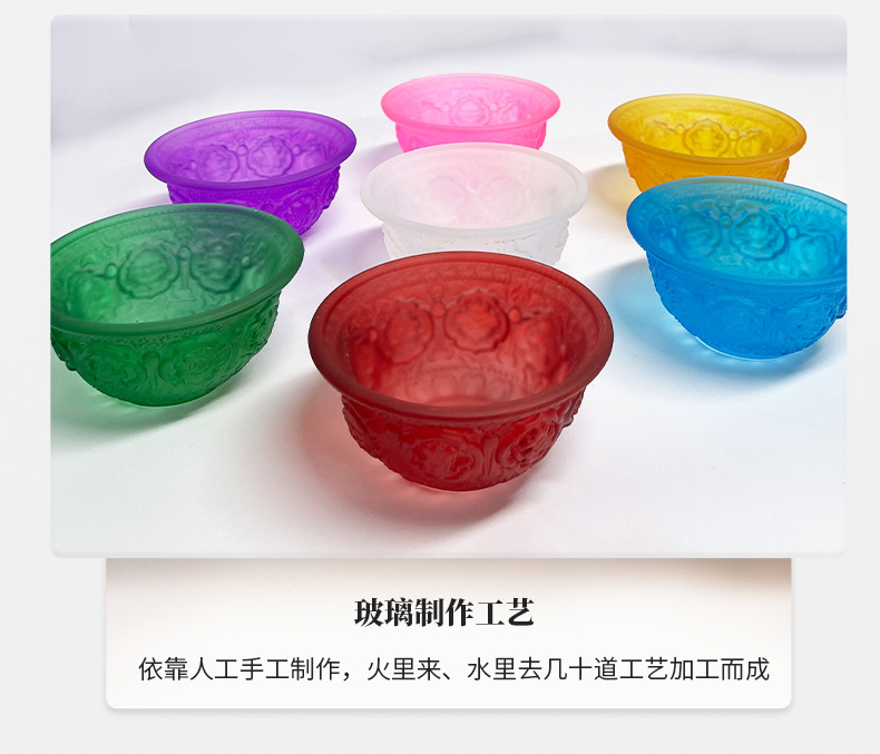 Чаши для подношения еды перед Буддой, семицветные счастливые восьмидрагоценные чаши, принадлежности для подношения еды, держатели для ламп, украшения, стеклянные масляные лампы