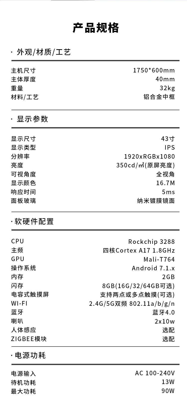 Размер дисплея 43inch