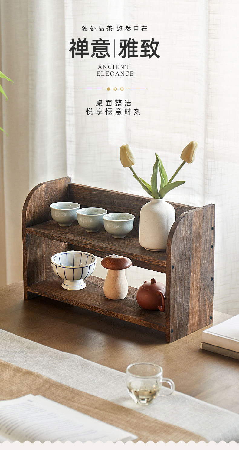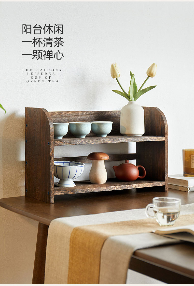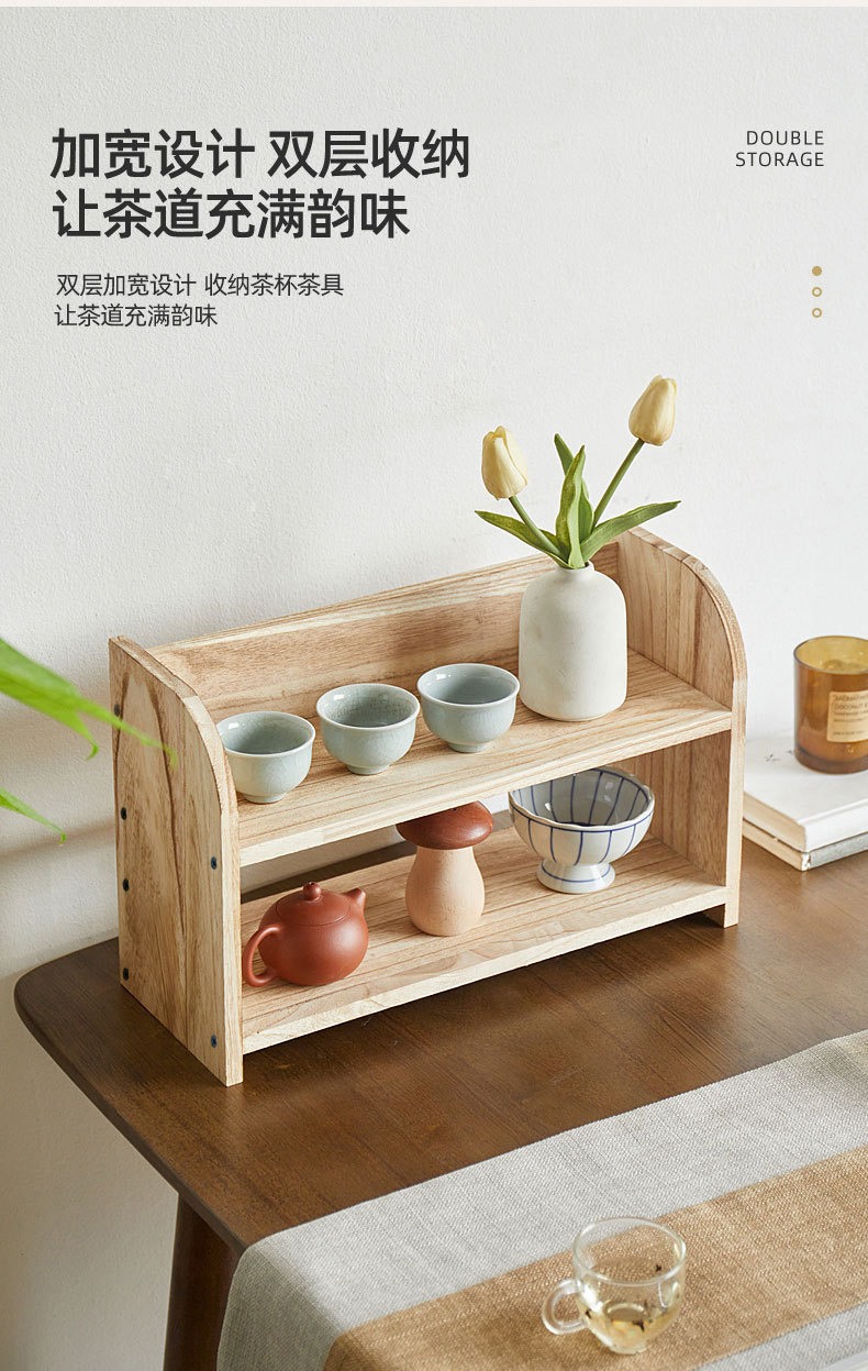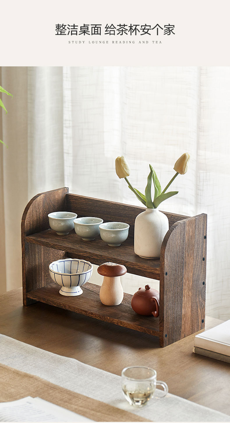 Стеллаж из массива дерева, настольный стеллаж для чайного набора и чашек