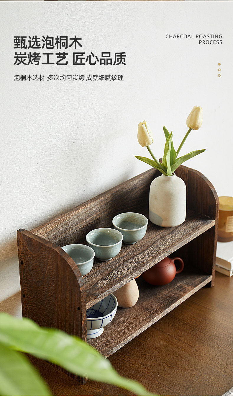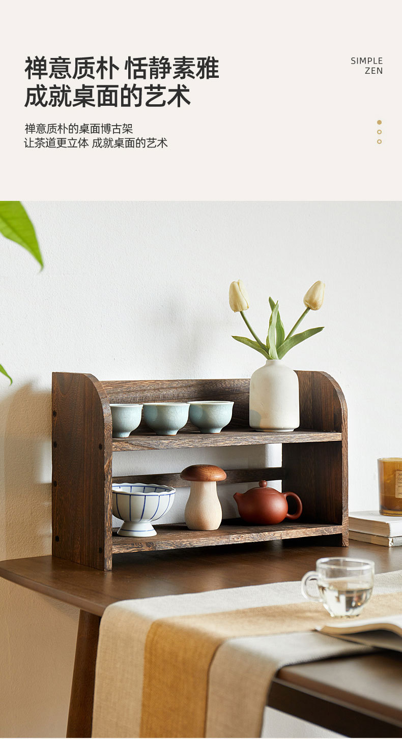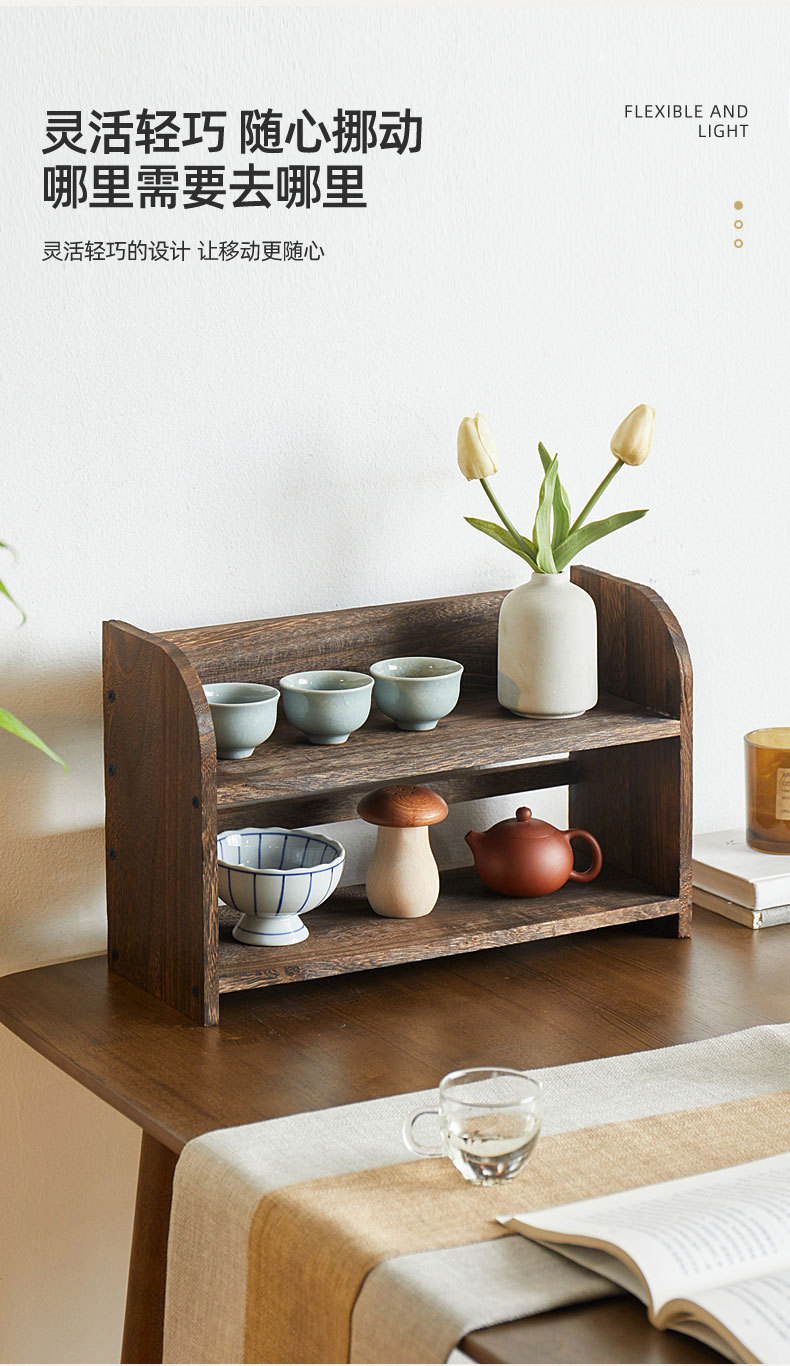 Стеллаж из массива дерева, настольный стеллаж для чайного набора и чашек