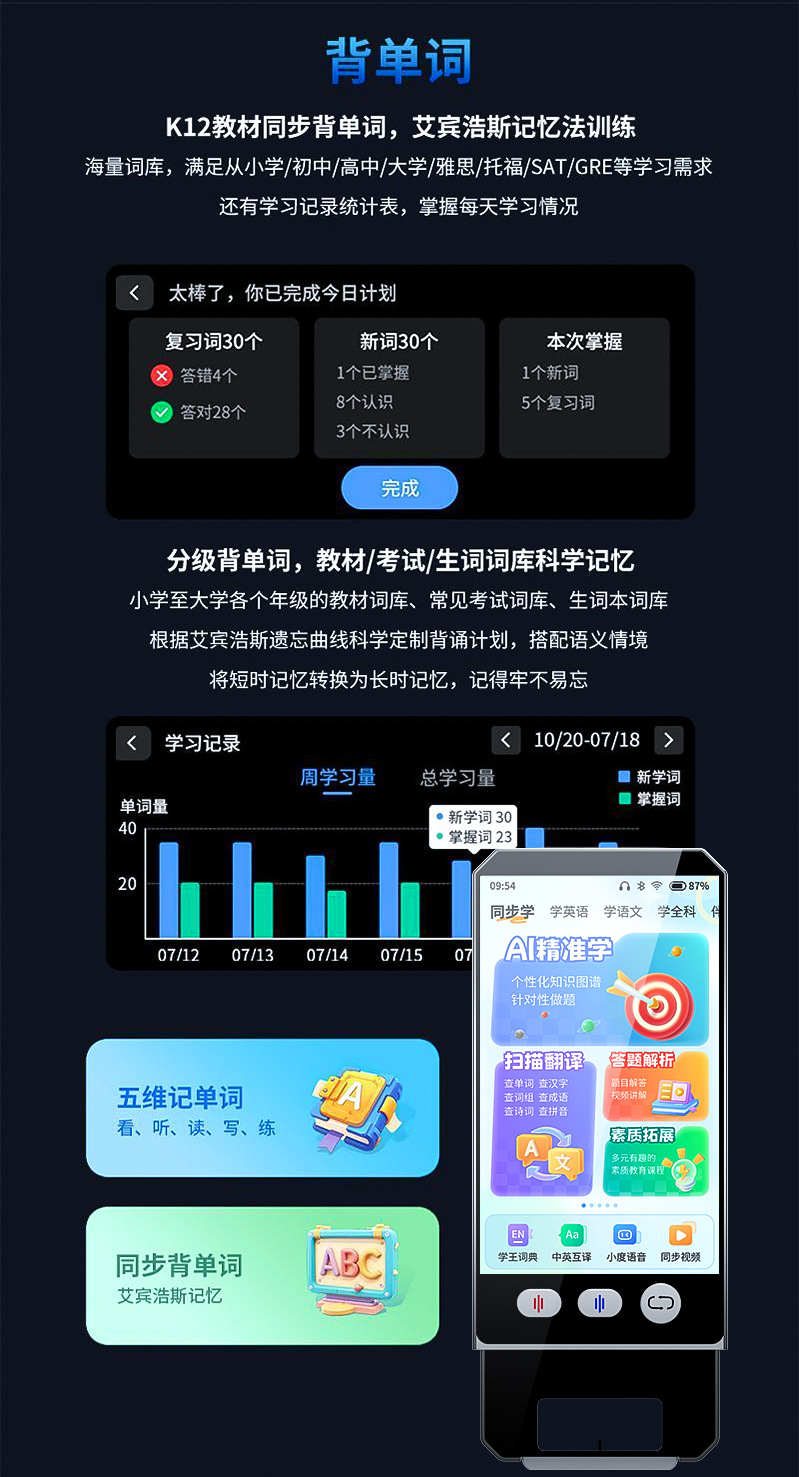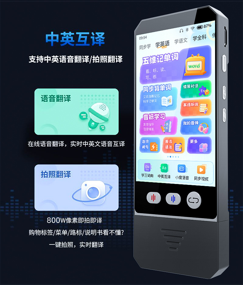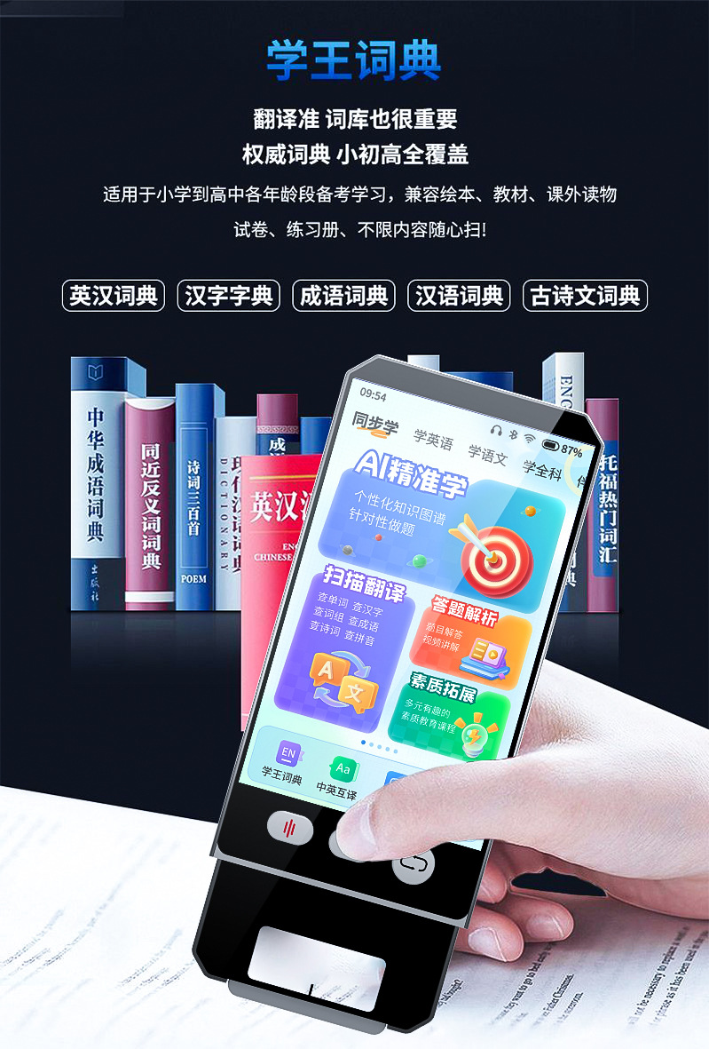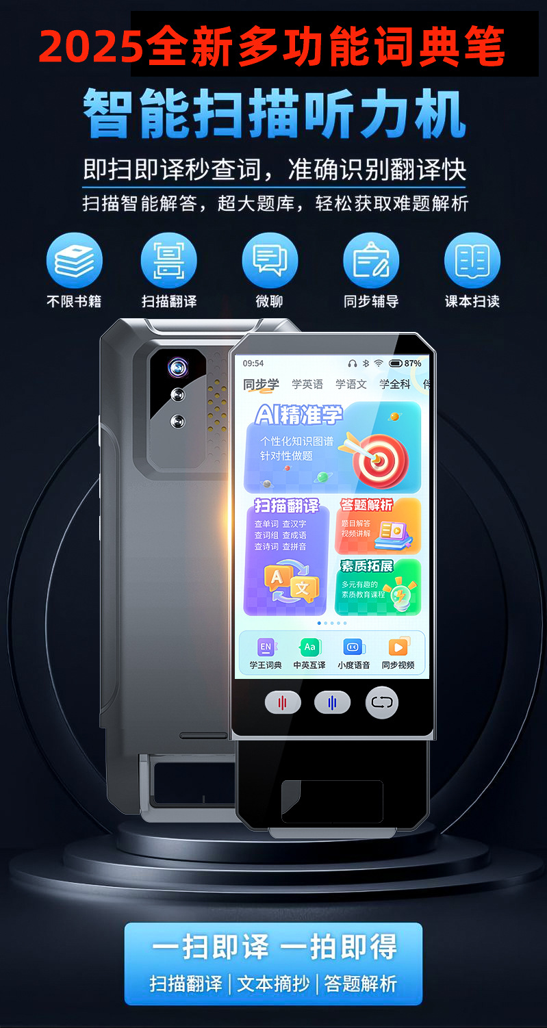 Настраиваемая обучающая машина для сканирования, портативный репитер, ИИ учитель, английский, начальная школа, средняя школа, старшая школа, интеллектуальная синхронная обучающая и практическая машина