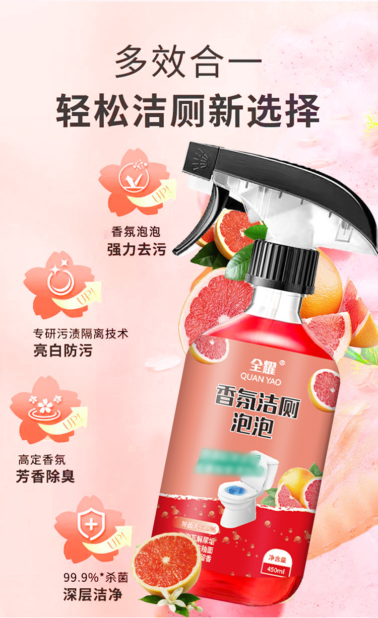 Пена для чистки туалета Quanyao с ароматом, средство для удаления накипи, дезинфекции и удаления запахов, чистка плитки в туалете