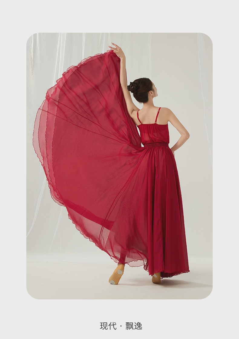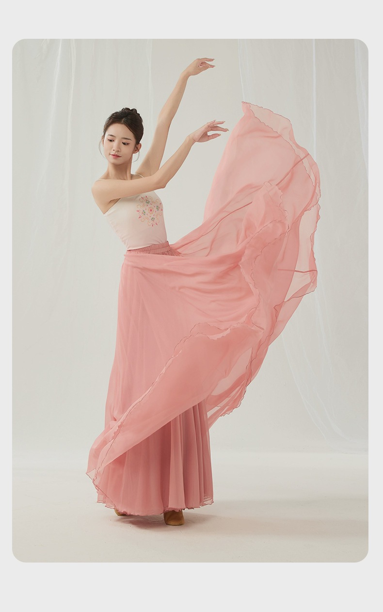 Костюм для китайского классического танца, элегантное платье из тенсела и шифона с двойным слоем