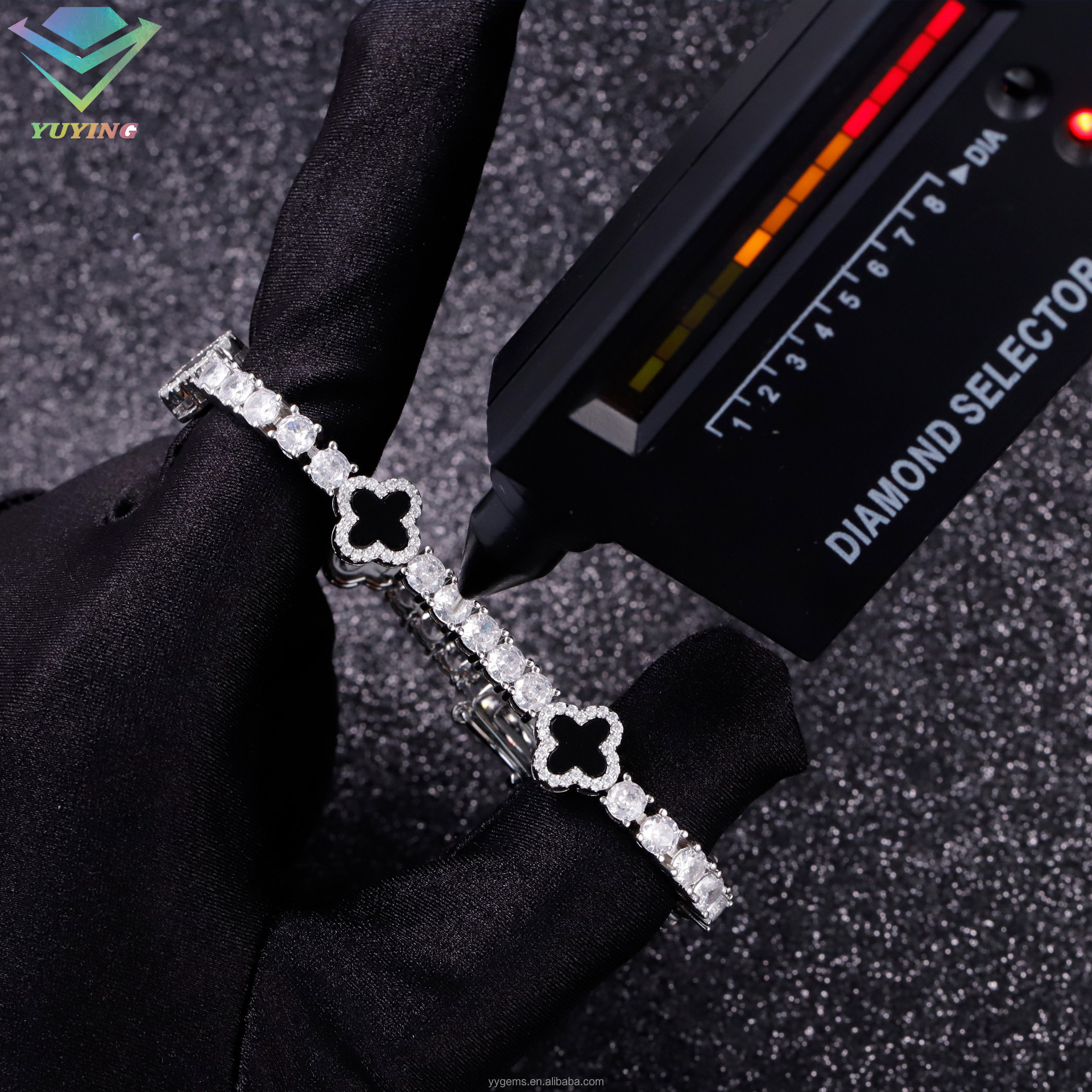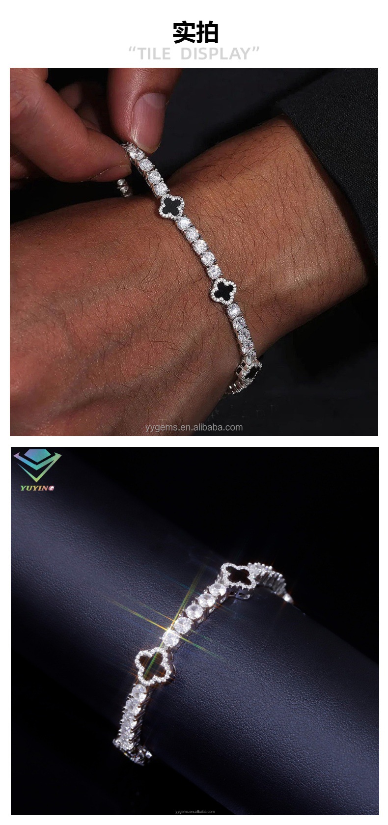 Европейский и американский стиль черный оникс браслет с четырьмя листьями клевером и бриллиантами теннисная цепочка легкая роскошь женские аксессуары