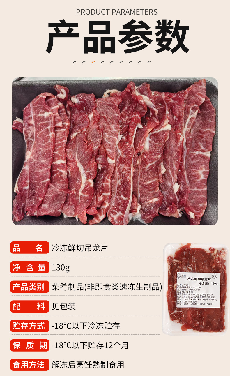 Баода замороженные свежие нарезанные драконьи ломтики 130г, упаковка, полуфабрикаты, халяльные говяжьи шпажки, ингредиенты для хот-пота, оптовая продажа