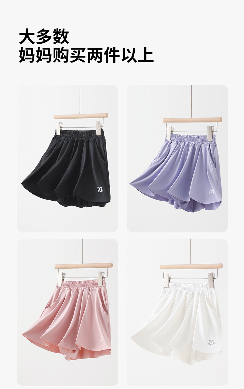 Шорты из ледяного шелка для девочек, летние быстросохнущие брюки, тонкие брюки для детей, большие юбки для девочек
