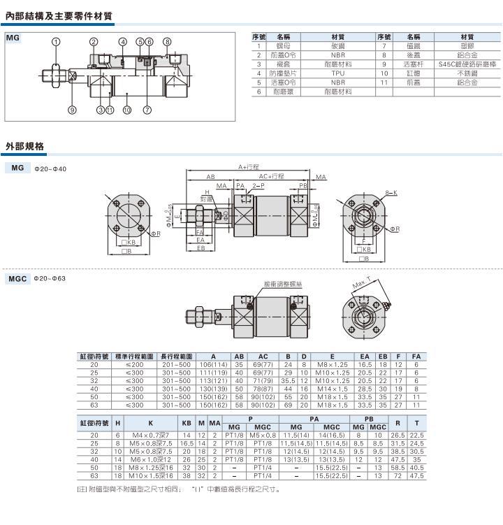 Номер товара MGC25X125S MGC25X150S MGC25X200S MGC25X200S