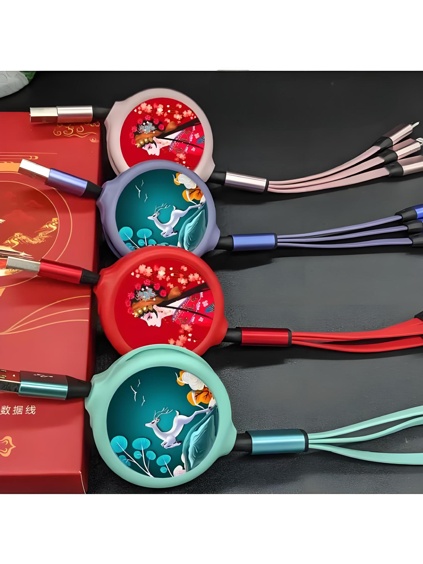 Оболочка зарядного кабеля для мобильного телефона, цветная печать, национальный стиль, три в одном, телескопический кабель