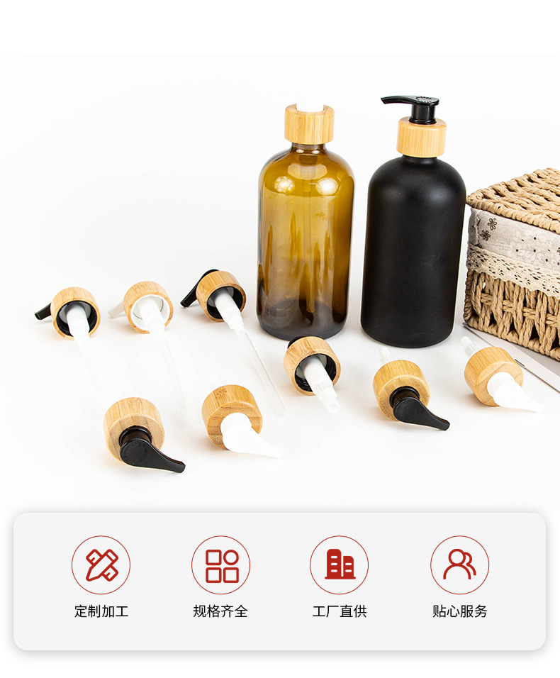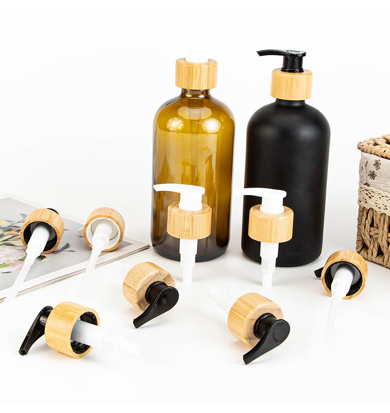 Бутылка для лосьона с 28 зубьями, насосом, крышка из бамбука, фабрика