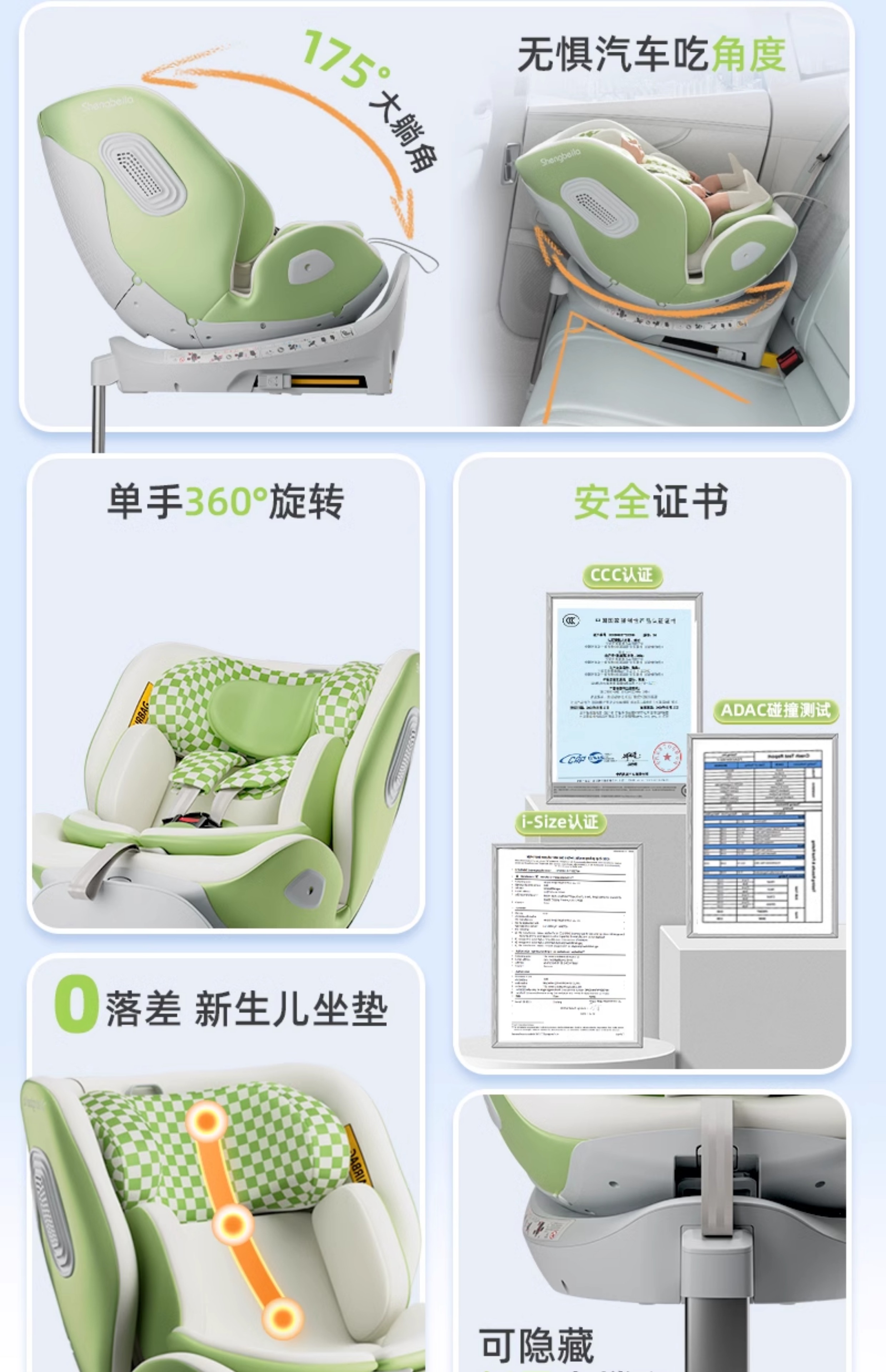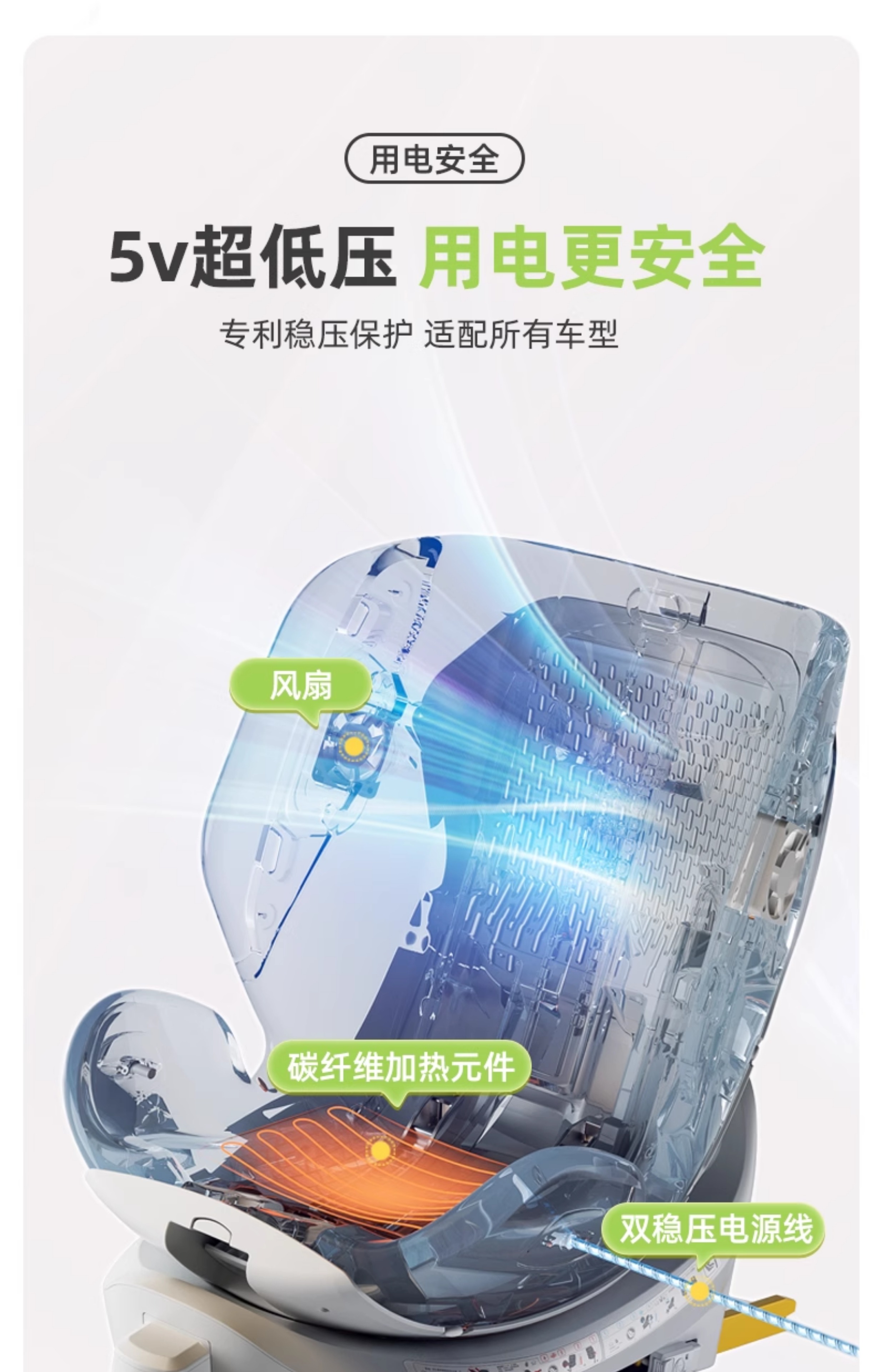 Автокресло для детей с интеллектуальной вентиляцией и обогревом для новорожденных от 0 до 12 лет