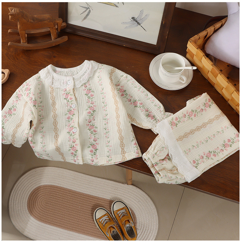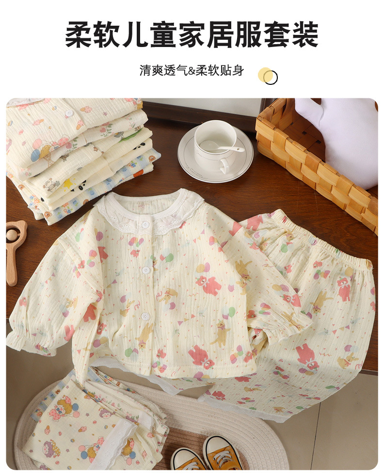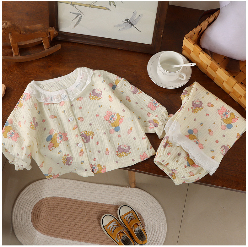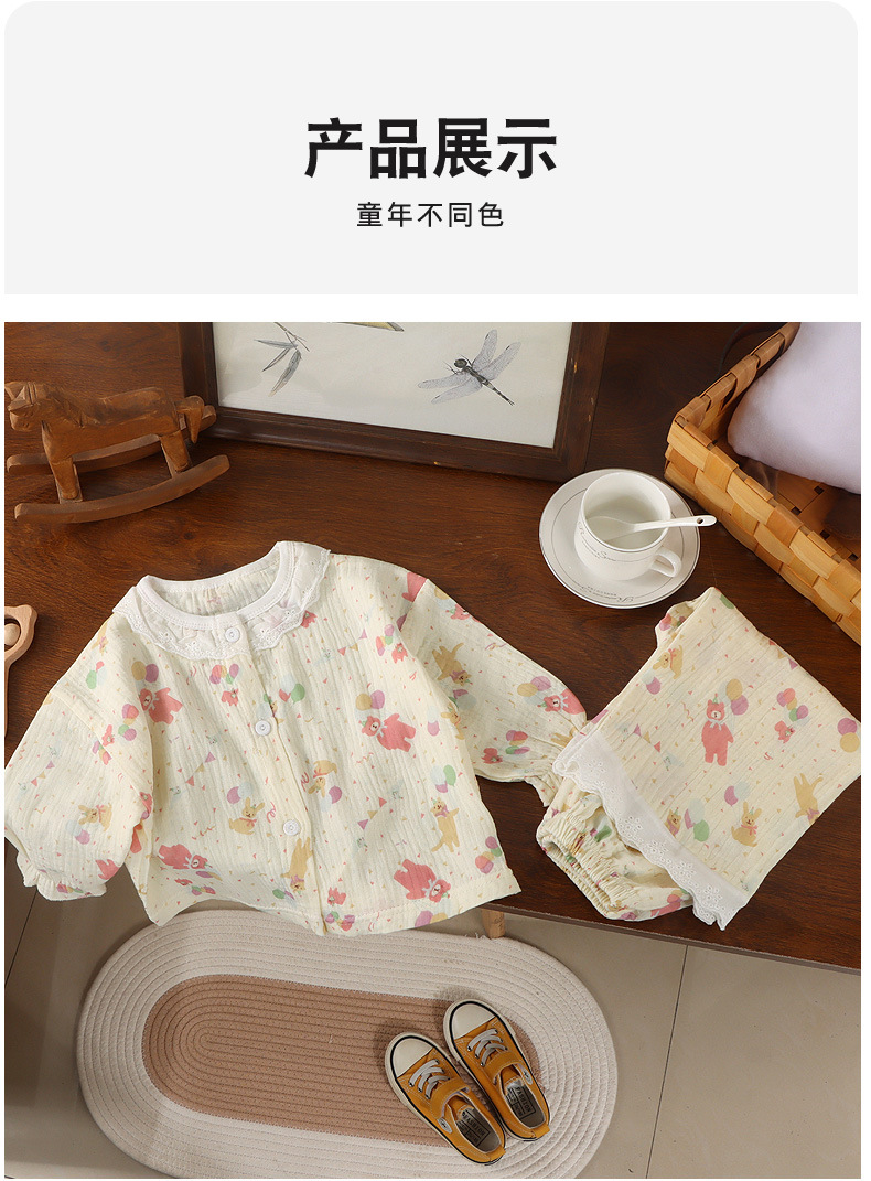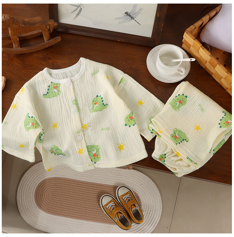 Кардиган и пижама из 100% хлопка для девочек, домашняя одежда с девятерым рукавом, легкие двойные хлопковые вещи для кондиционера