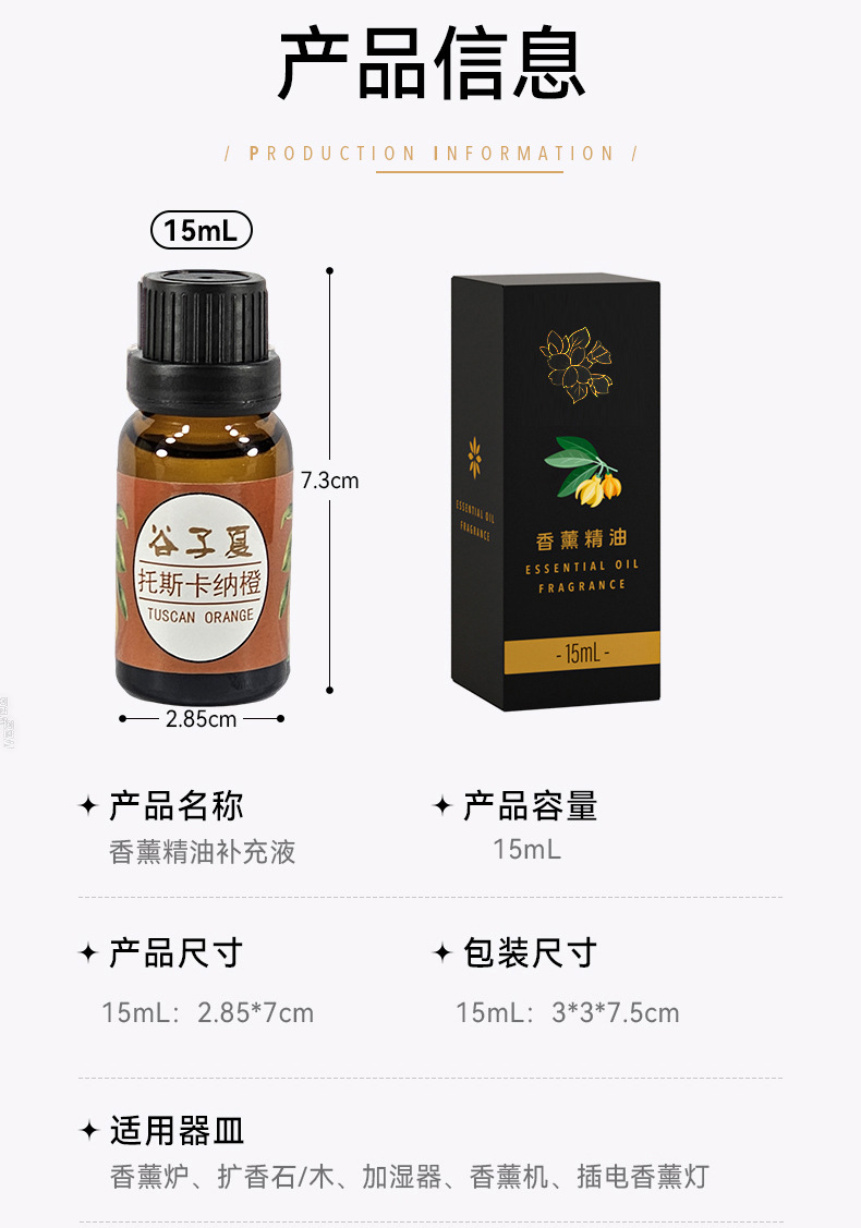 Тосканский апельсин Lulu Store Аромат Эфирное масло Дополнение 15 мл Образец Спальня Дом Комната Ароматерапия