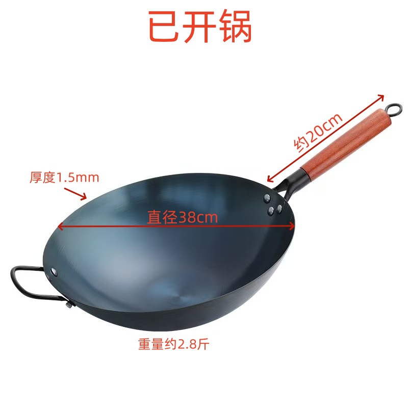 Фабричный утолщенный вок для жарки, household коммерческий вок, не покрытая чугунная кастрюля, жареная синяя с круглым дном, оптовая продажа кованого железа