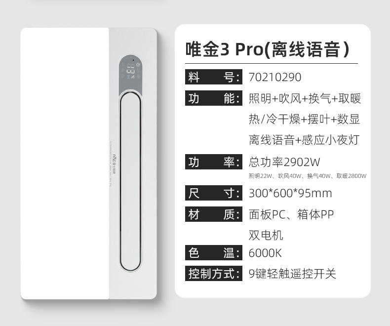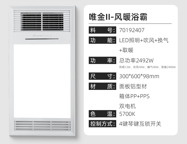 ![]() | Nvc air heating bath heater-weijin light-lighting+heating+ventilation 2300w | ¥228.0 / ≈ 2 773 ₽ | 485 | 5749906020860 | |