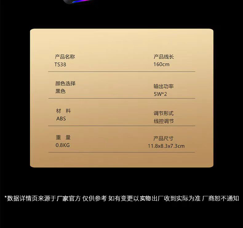 ![]() | Black ts38 computer speakers [luminous version] | ¥26.8 / ≈ 324 ₽ | 1856 | 6089654071894 | |