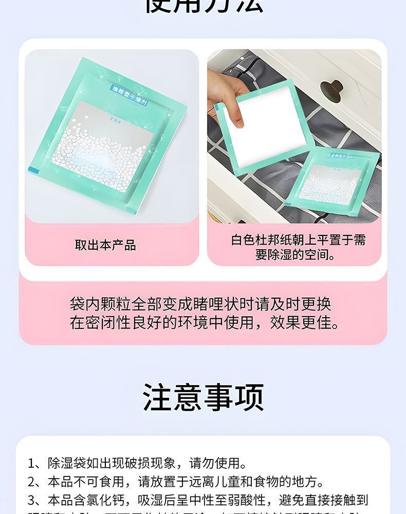 ![]() | Ordinary quality: [1 bag] small package + ordinary dehumidification special treatment huinan tian [new leak-proof dehumidification bag] visible dehumidification | ¥2.29 / ≈ 28 ₽ | 52742 | 5744634436815 | |