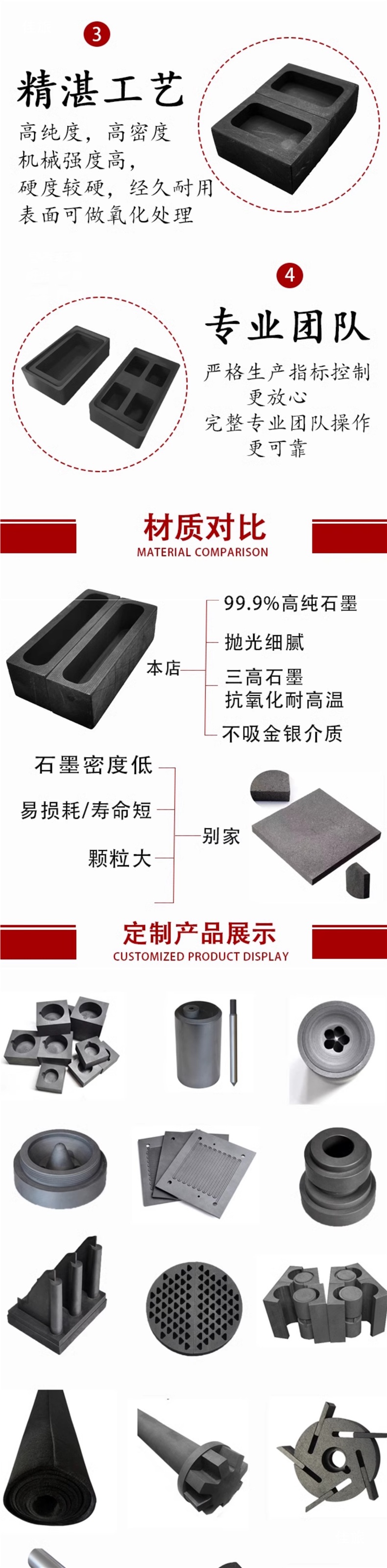 Графитовый бак для растворенного золота и серебра, длинная квадратная форма для слитков, антипригарная и легкая в извлечении, высококачественный производитель