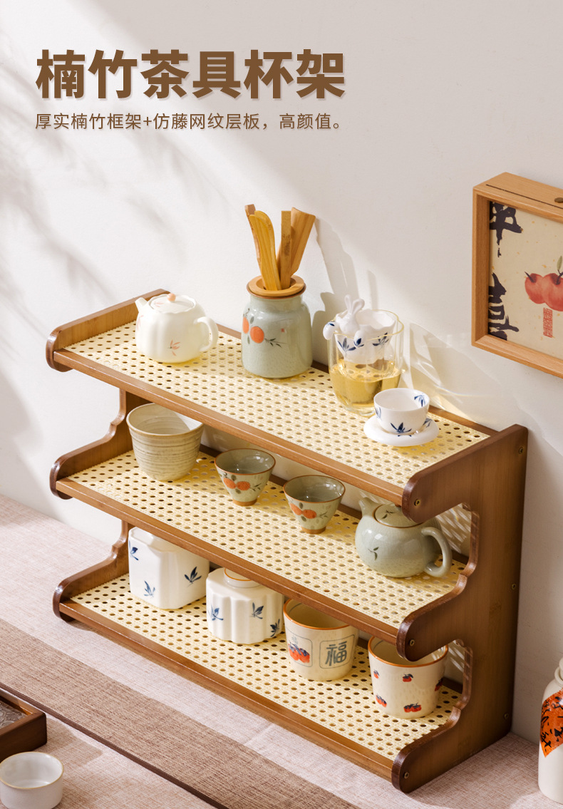 Новый китайский стиль, настольный антикварный стеллаж для чайников и чашек