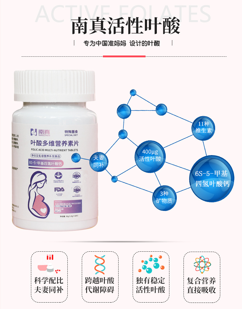 Оптовый агент/Наньчжэнь активные таблетки фолиевой кислоты многомерные питательные вещества 6S-5-метилтетрагидрофолиевая кислота дропшиппинг