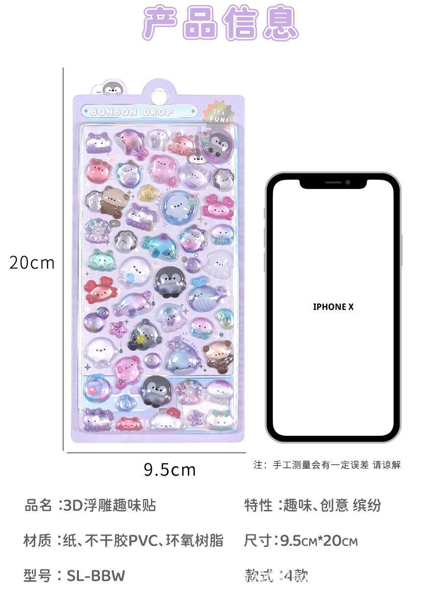 Японские мультяшные наклейки с рельефом, кристальные наклейки, декоративные наклейки для детей, 3D наклейки, оптовая продажа