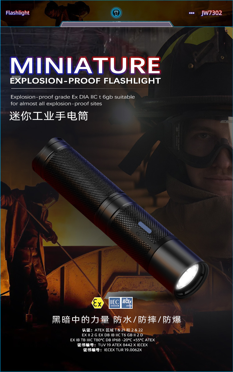 Миниатюрный взрывозащищенный фонарик Ocean King JW7302A, носимый на каске, огнеупорный фонарь