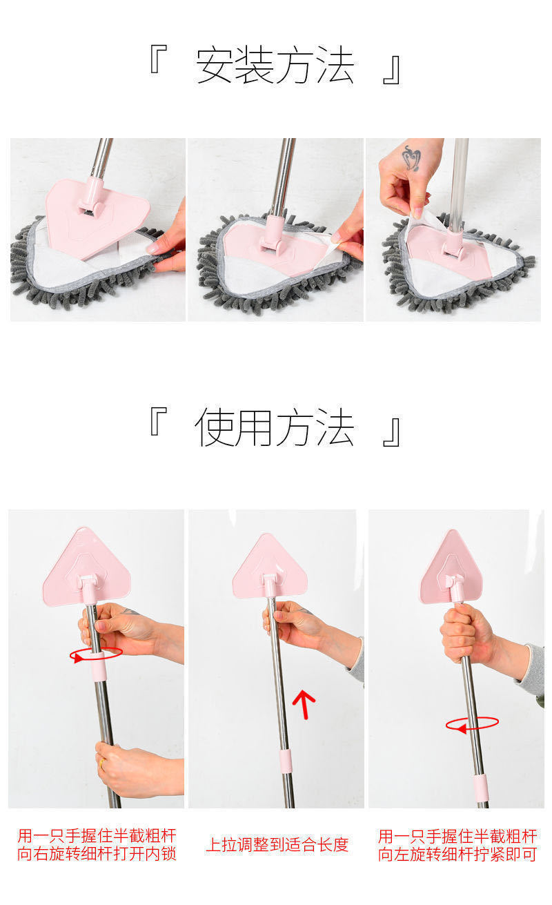 Мини маленький треугольный ленивый моп с удлинителем для мытья стекол кухонный моп для пола в гостиной моп из шенилла