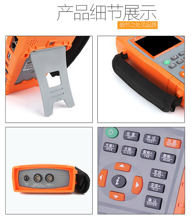 本仪器功能齐全、简单易用、携带方便,是工程商安装和维护前端摄像设备、提率、降低工程费用的好帮手 。
