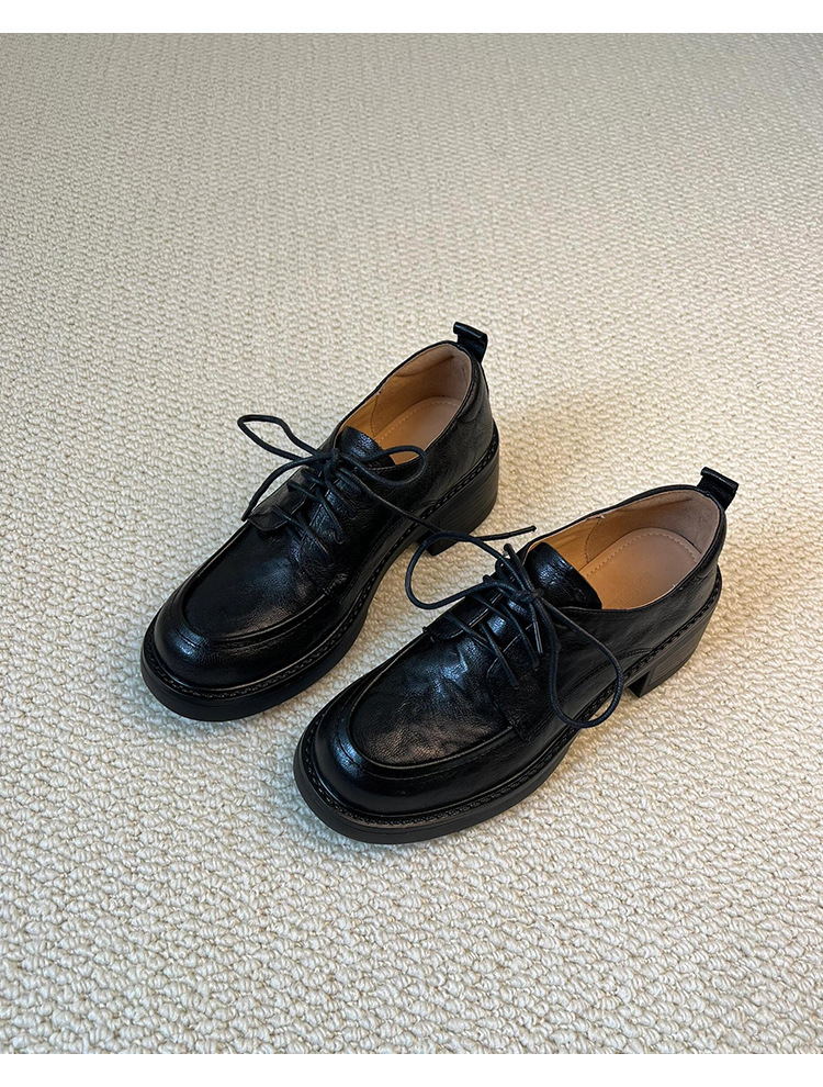 Лоферы с толстой подошвой в колледжском стиле для женщин, из овчины, универсальные плоские туфли из натуральной кожи, повседневные маленькие кожаные туфли