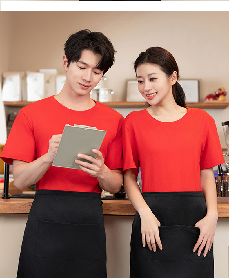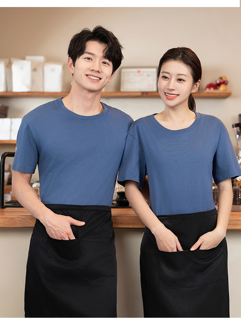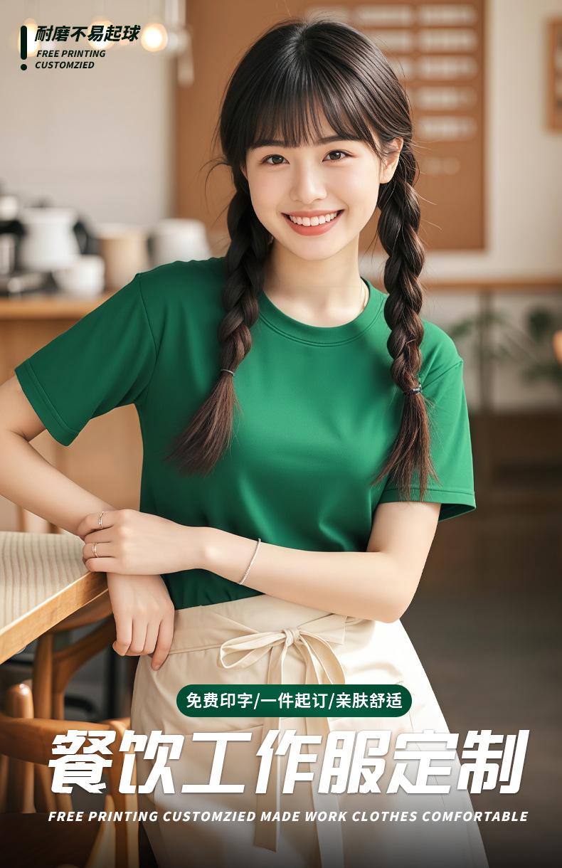 Костюмы для общественного питания, летняя футболка, униформа для ресторана, официант, зеленая круглая горловина, короткий рукав