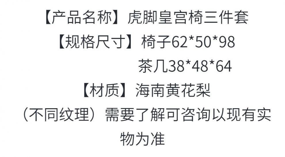 ![]() | Hainan huanghuali tiger feet palace chair three-piece set | ¥33888.0 / ≈ 412 198 ₽ | 10 | 5748284536787 |