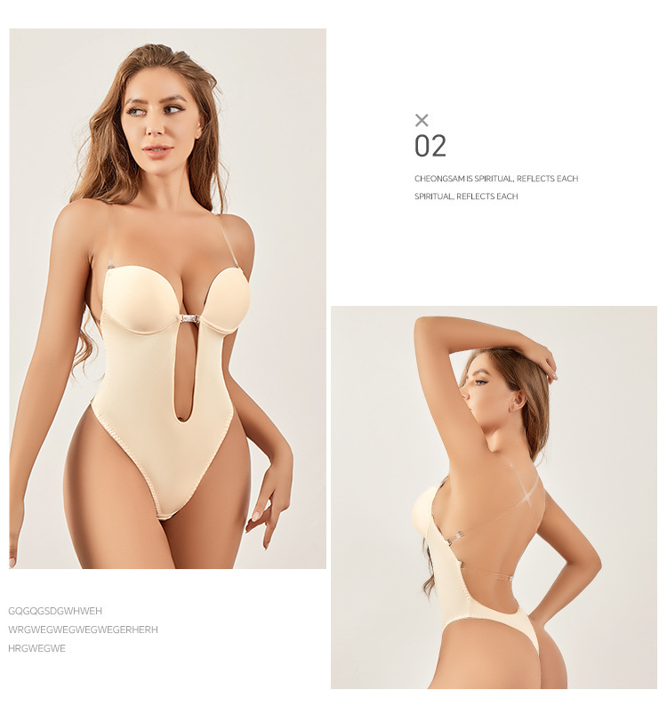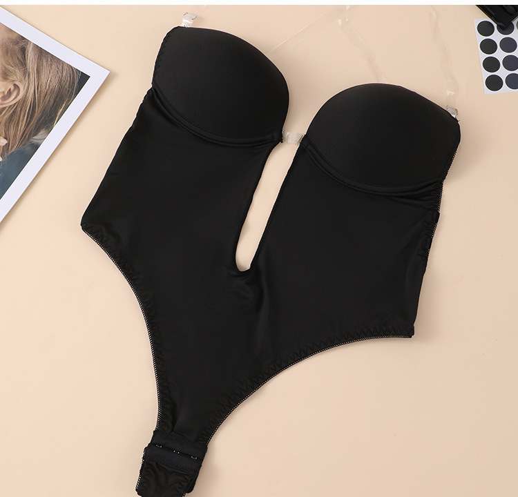 Женский комбинезон больших размеров с формирующим бюстгальтером, невидимыми бретелями, открытой спиной и сборкой