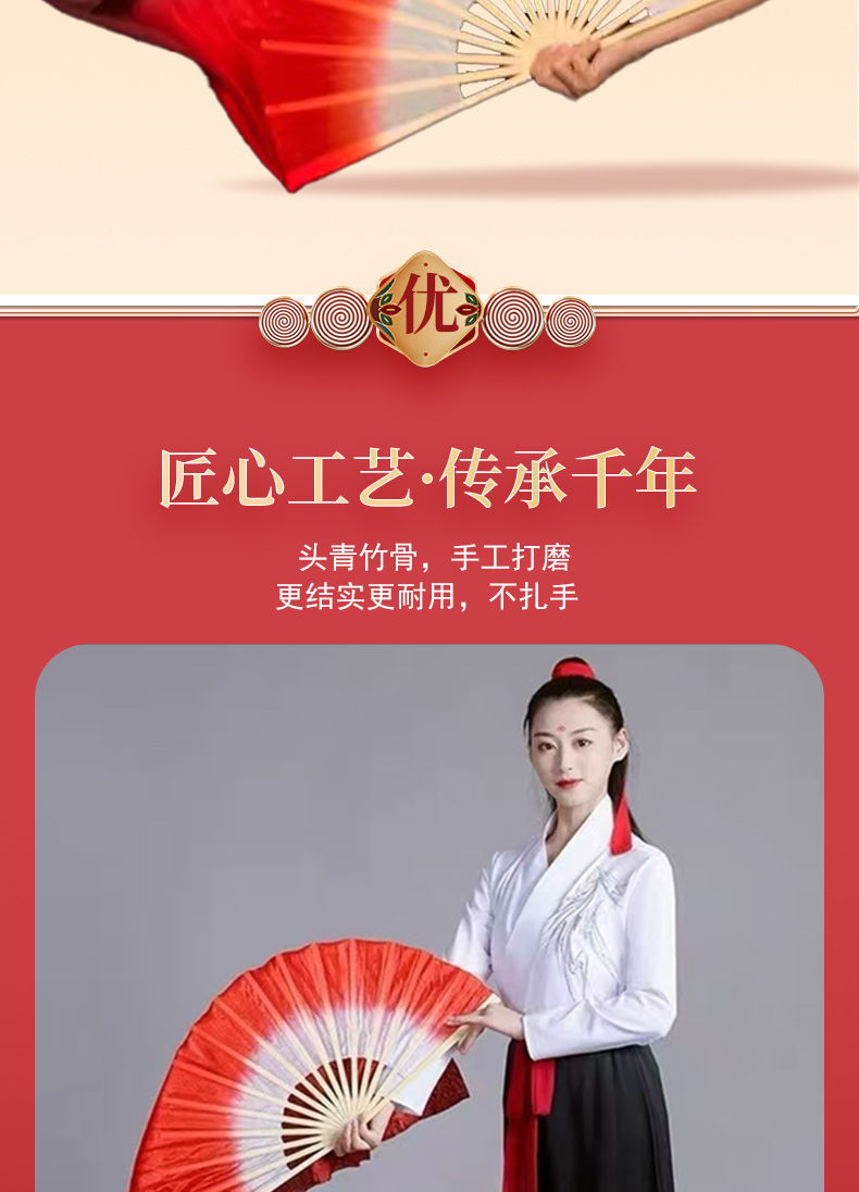 Элитный новый стиль танцевального веера, китайский стиль, красный градиент, для народного танца, выступление для среднего возраста