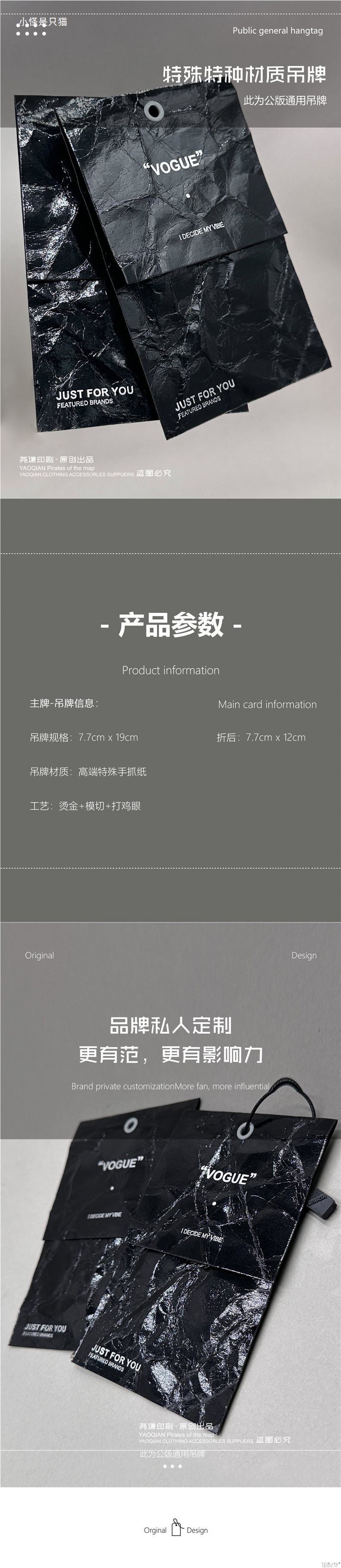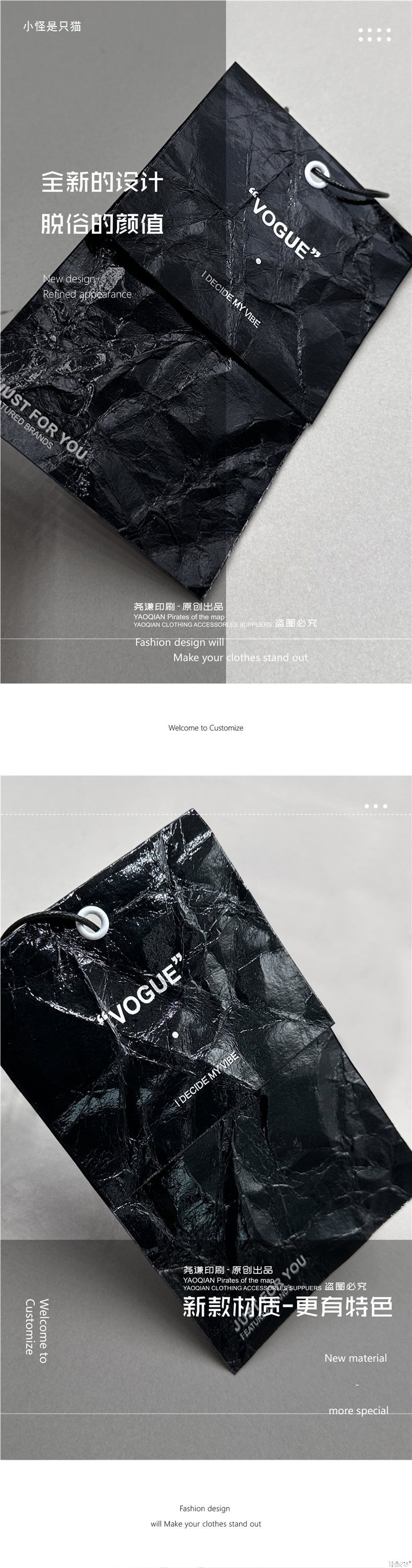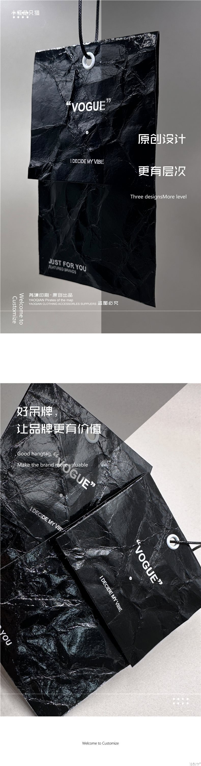 Специальный материал, черный бумажный тег, яркая черная крепированная бумага, модный бренд одежды