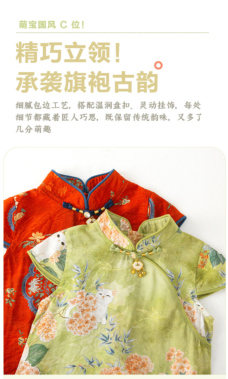 Летнее платье чонгсам для девочек новый китайский стиль детская юбка с коротким рукавом ханьфу