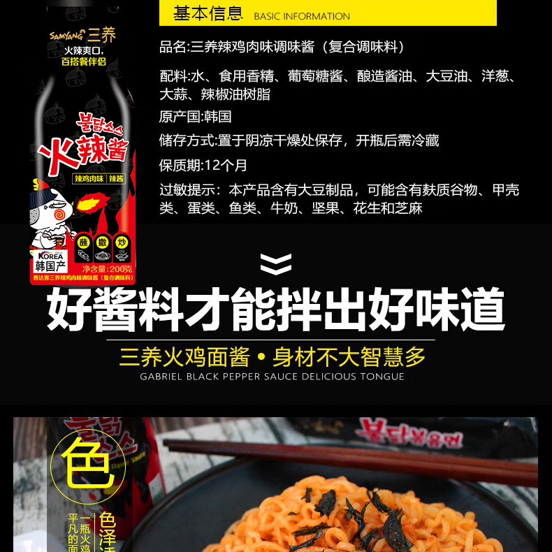![]() | Spicy chicken flavor sauce 200g | 2шт: ¥15.77, 24шт: ¥15.26 | 11435 | 5749209116703 | |