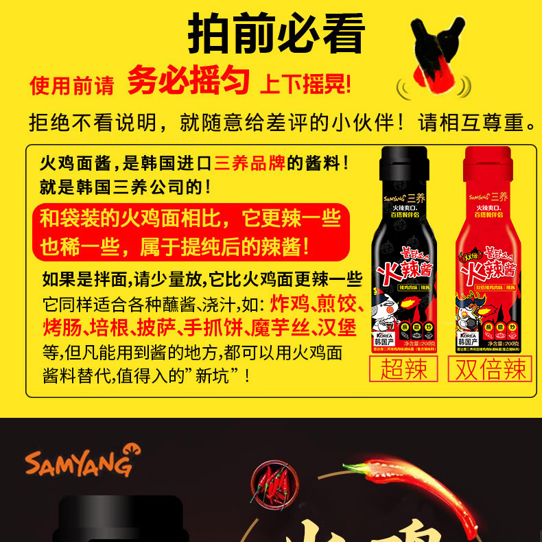 ![]() | Double spicy chicken flavor sauce 200g | 2шт: ¥15.77, 24шт: ¥15.26 | 11983 | 5749209116704 | |