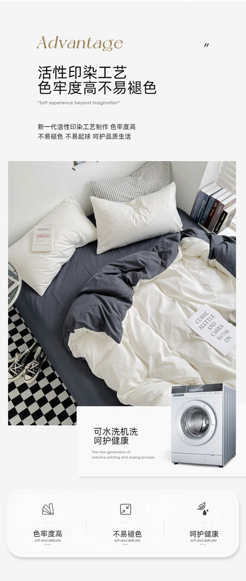Нордический стиль, японский двухпредметный комплект, простой односпальный комплект, однотонный, приятный к коже, моющийся