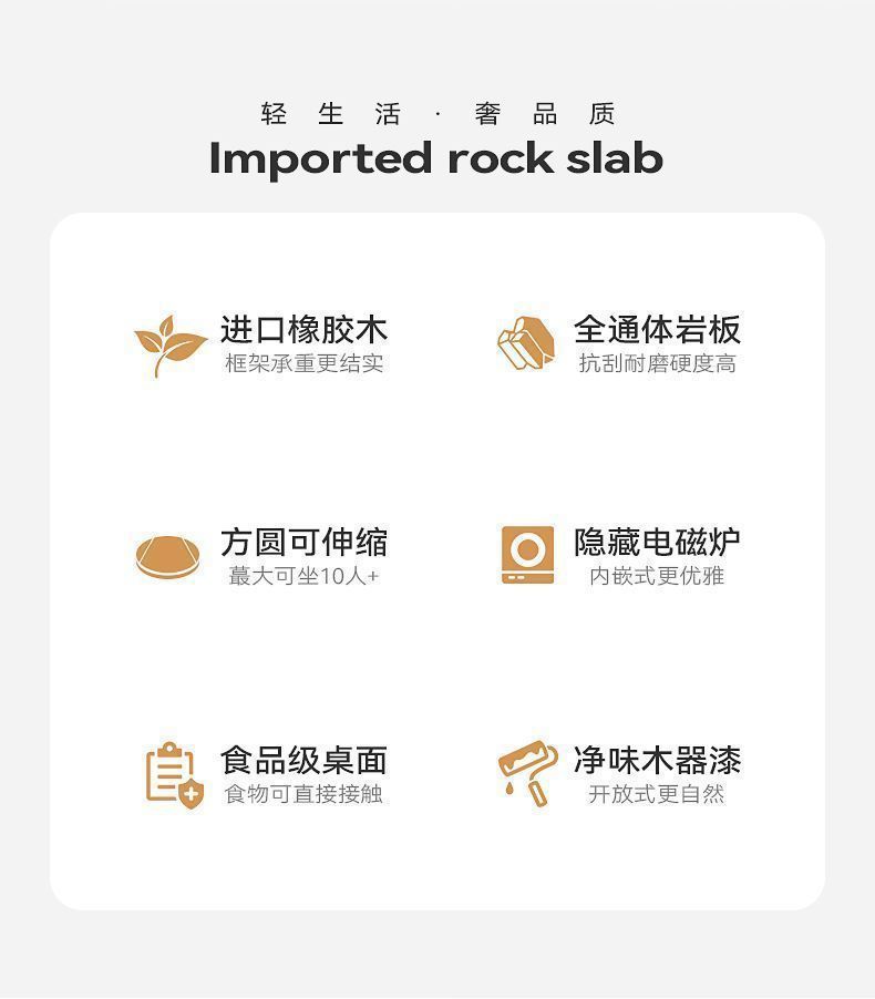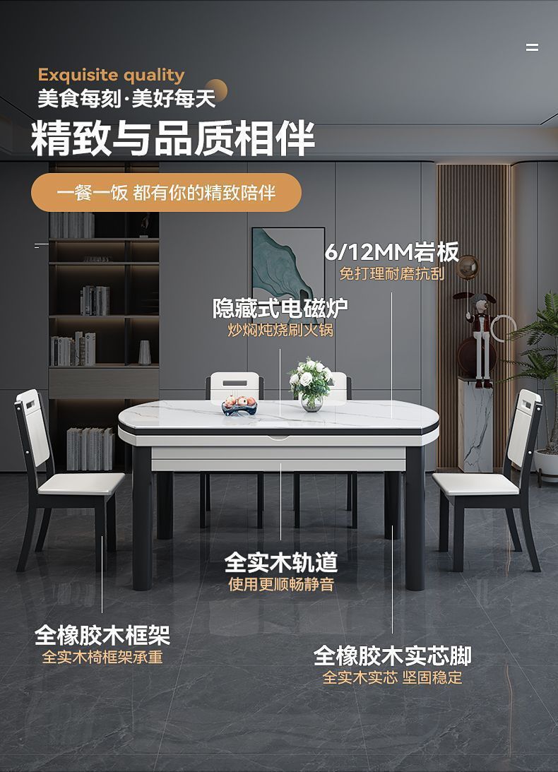 Обеденный стол из каменной плиты, легкая роскошь, интегрированная индукционная плита, квадратный и круглый, для небольших квартир