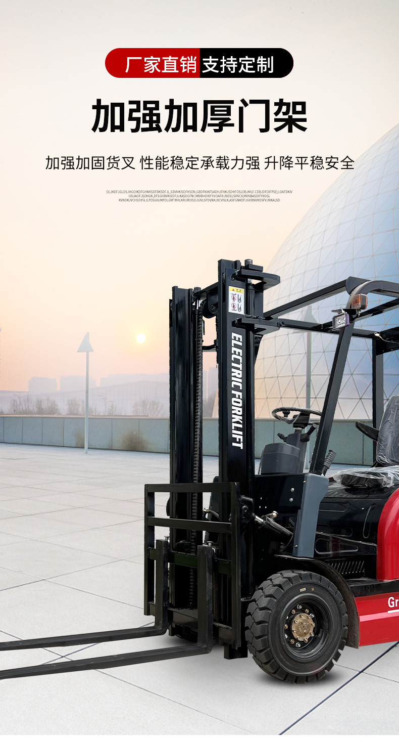 Электрический погрузчик малой грузоподъемности на 1 тонну, гидравлический, четырехколесный, малый, электрический погрузчик с литиевым аккумулятором
