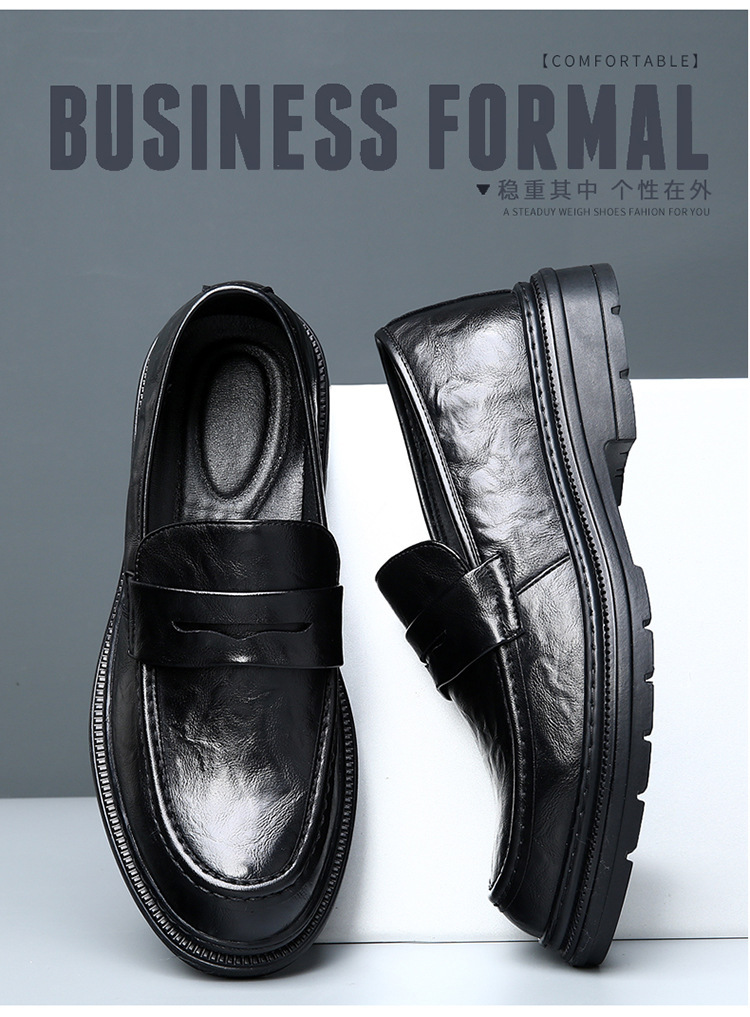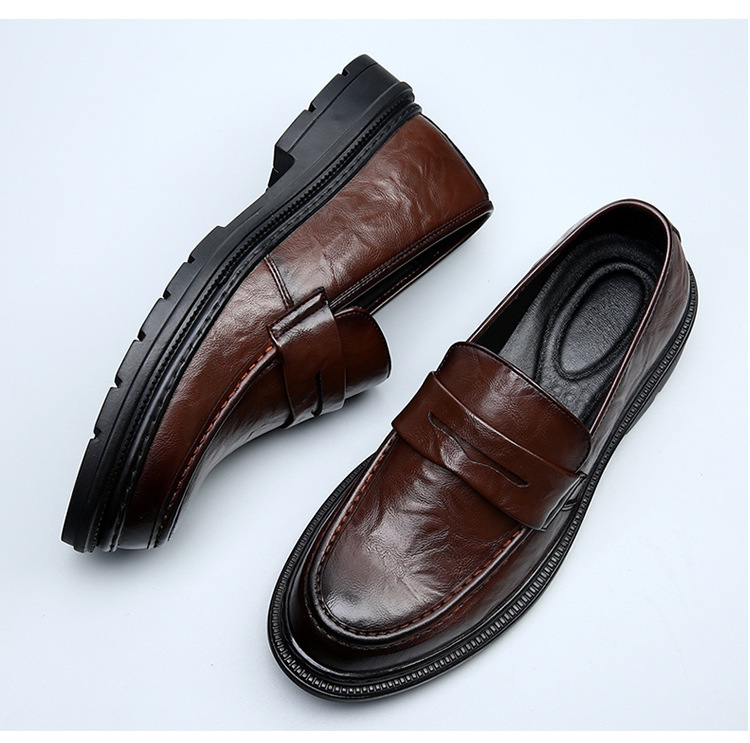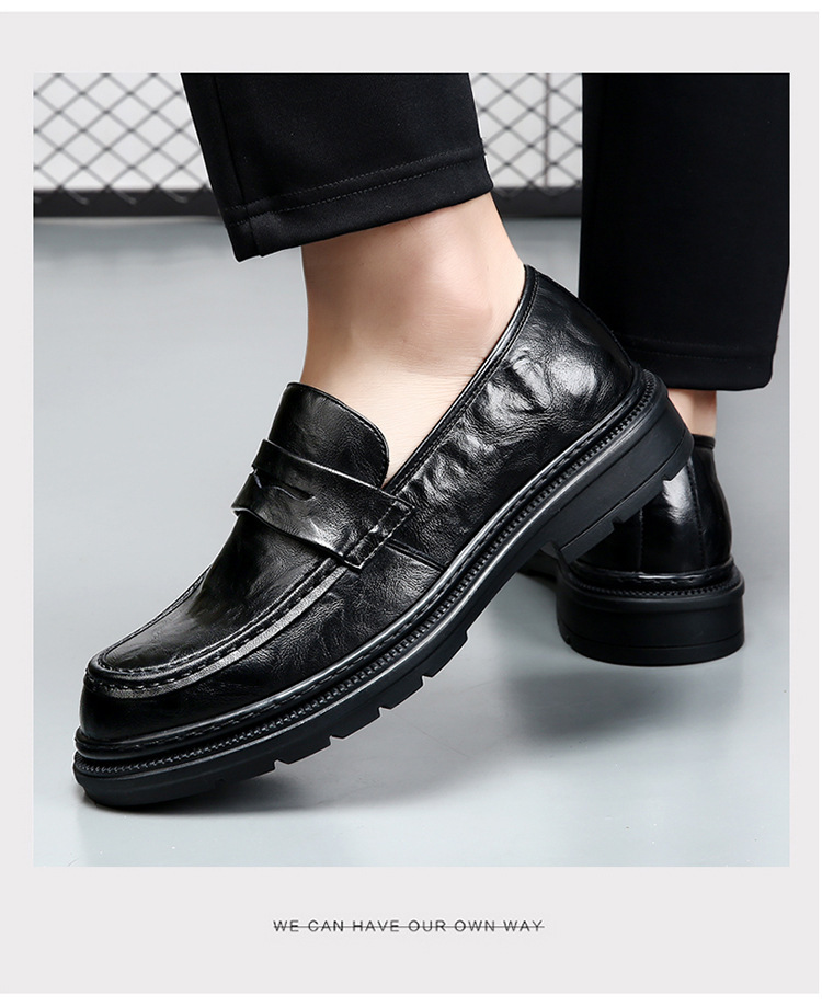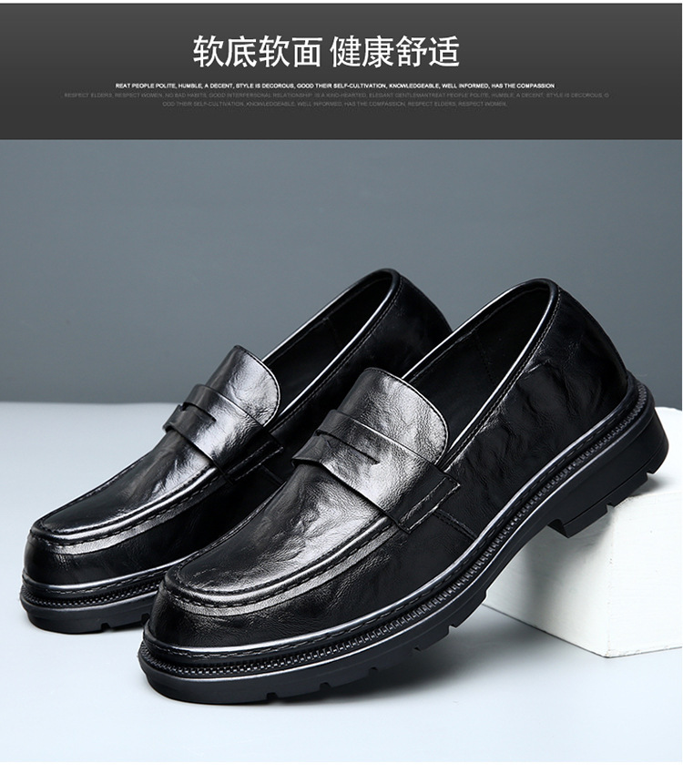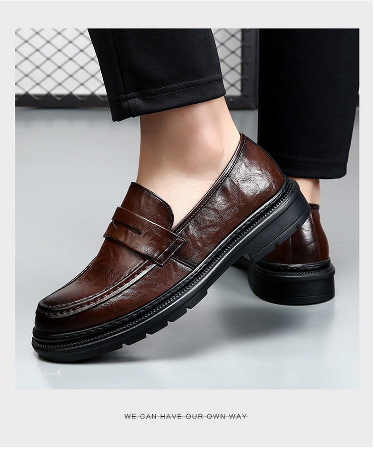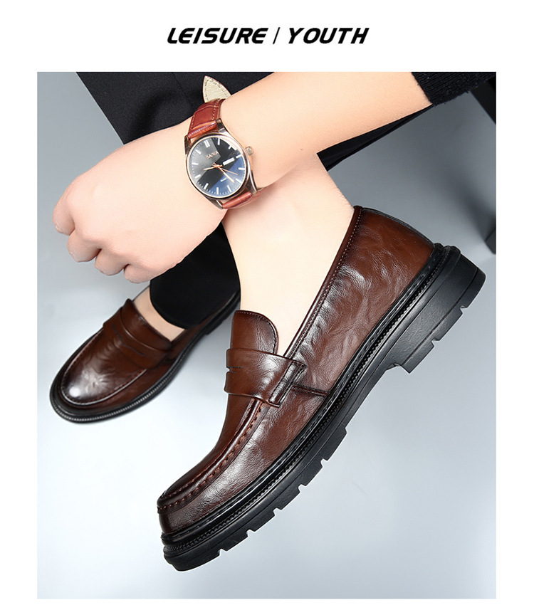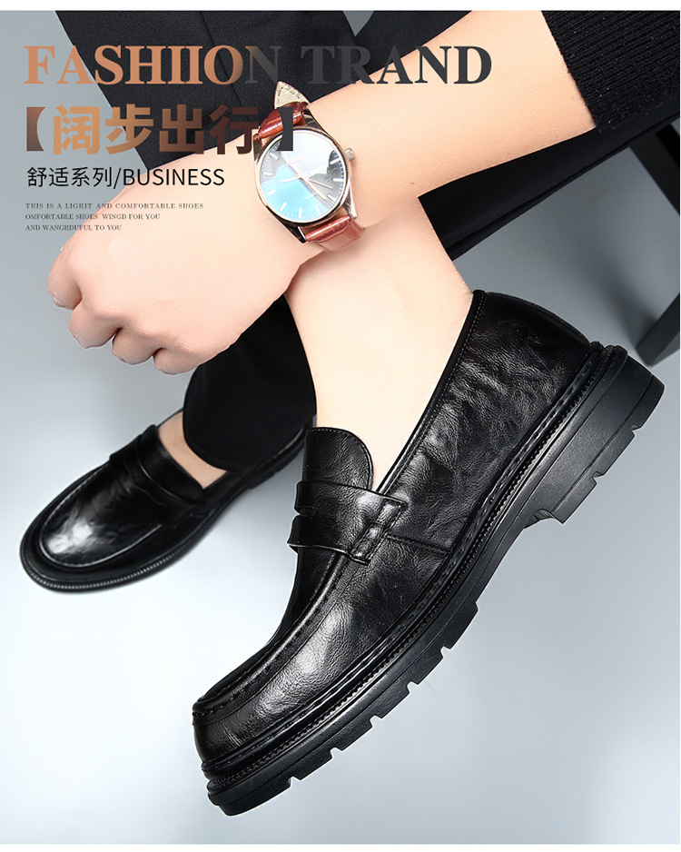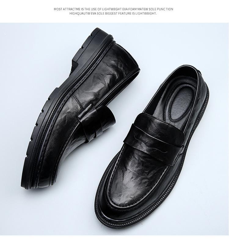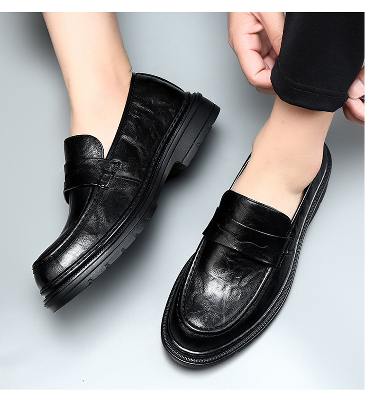 Мужские кожаные туфли новые осенние деловые туфли толстосоленные без шнурков повседневные кожаные туфли комфортные и легкие