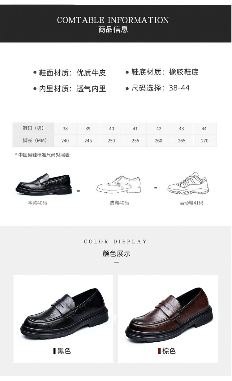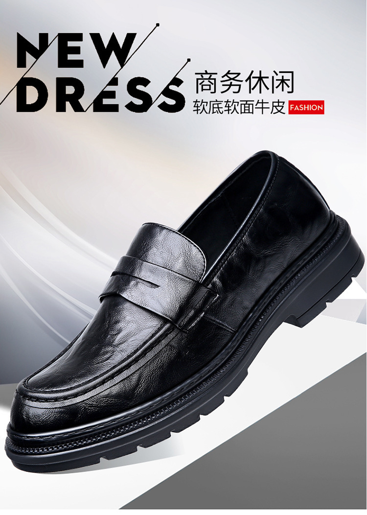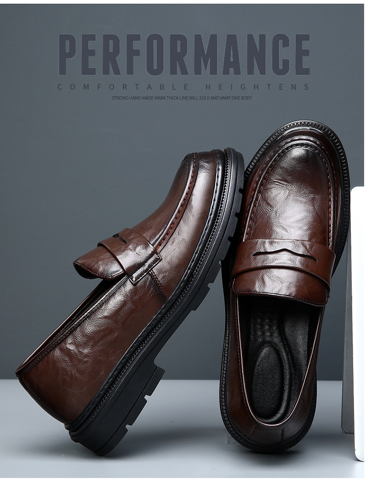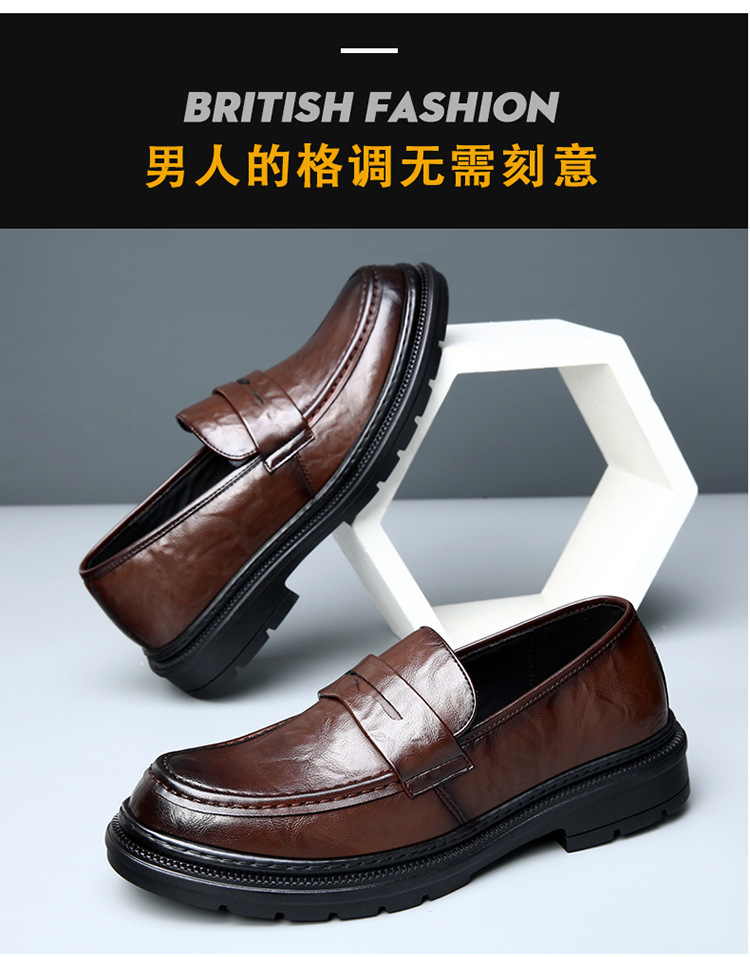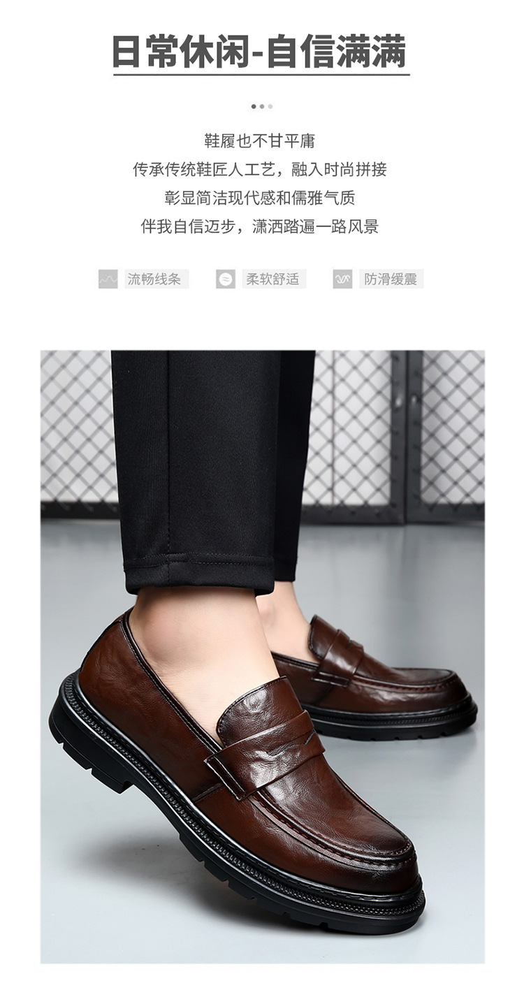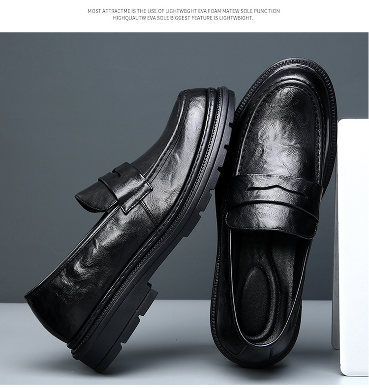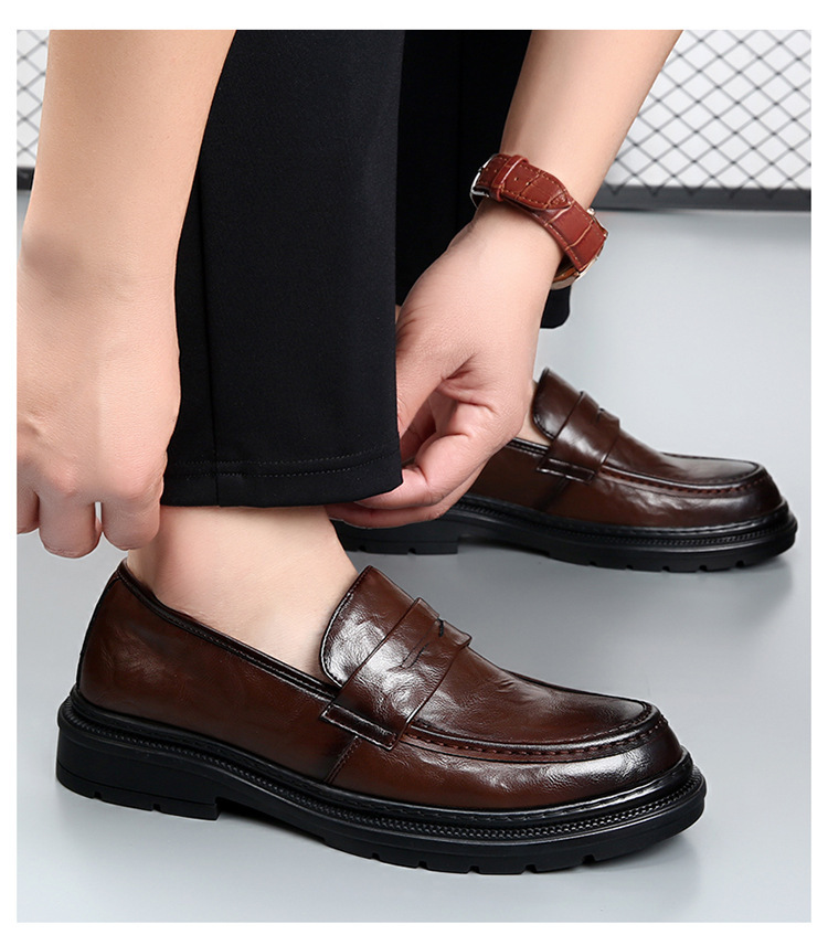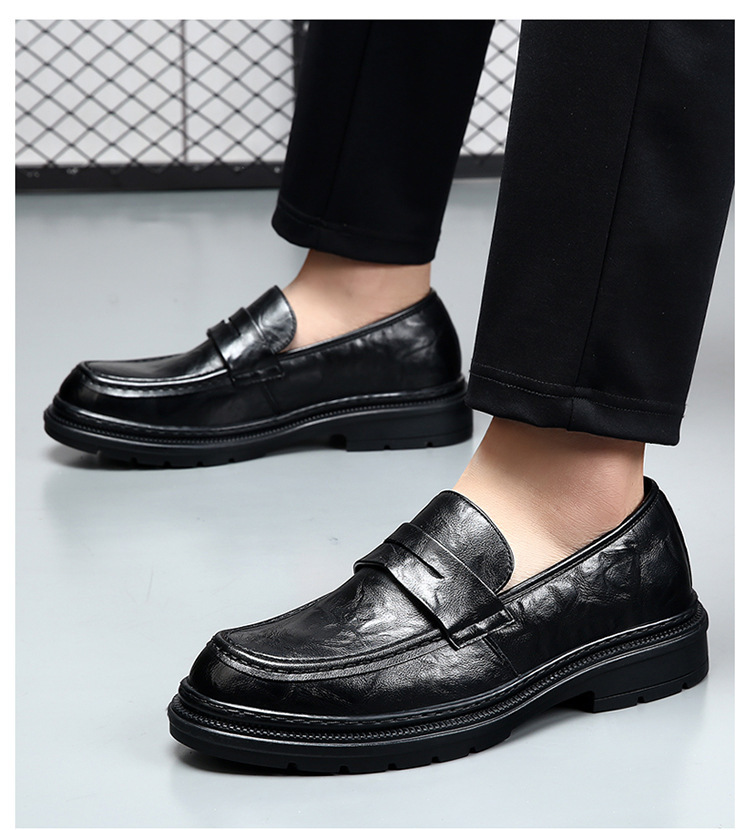 Мужские кожаные туфли новые осенние деловые туфли толстосоленные без шнурков повседневные кожаные туфли комфортные и легкие