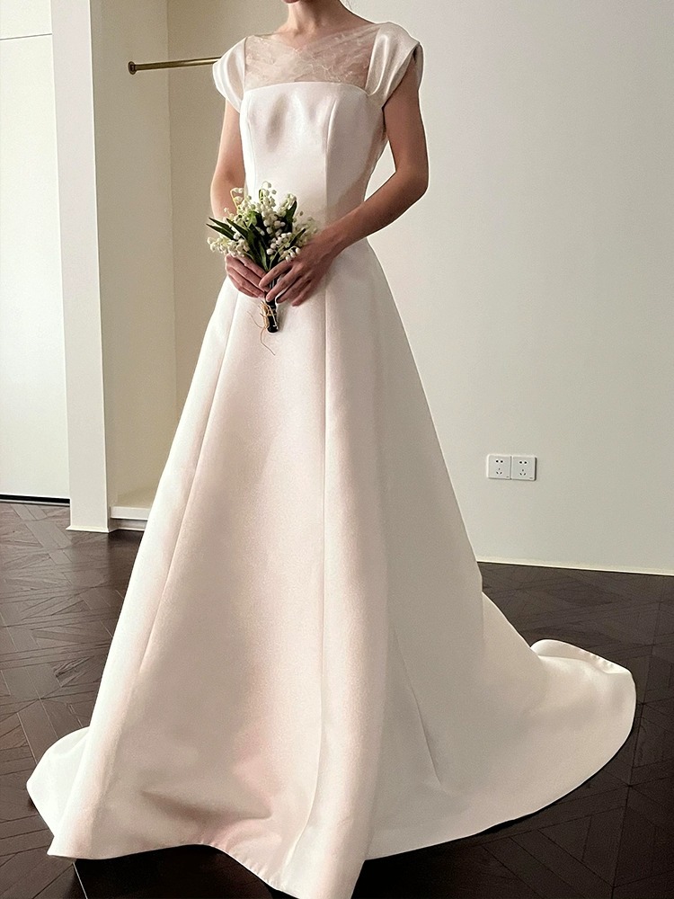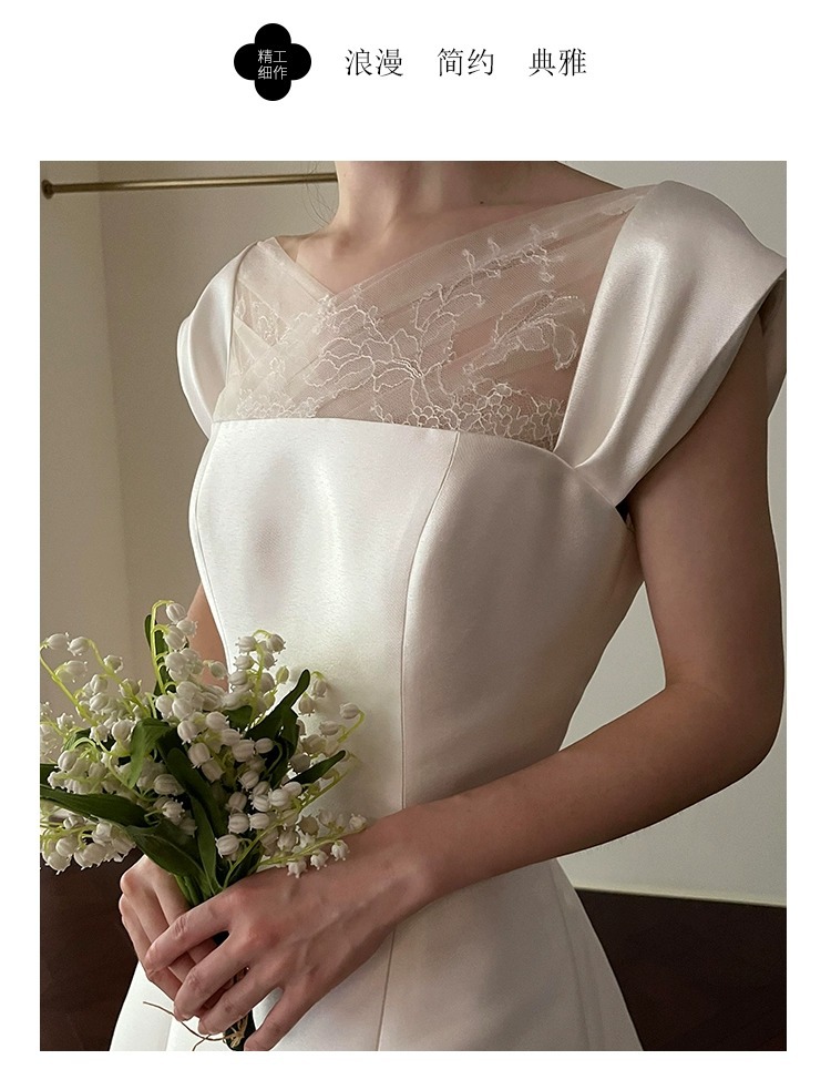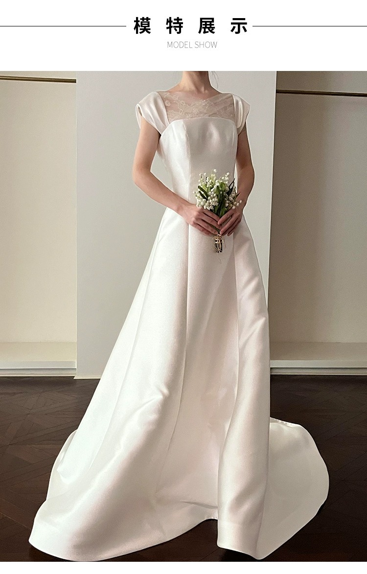 Классическое белое свадебное платье в корейском стиле, простое, с маленьким хвостом, для дня рождения