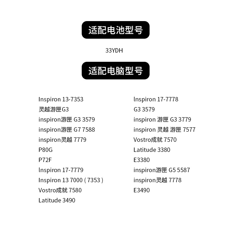 Для Dell 33YDH G3-3579 3779 G5-5587 7580 7778 7577 батарея ноутбука