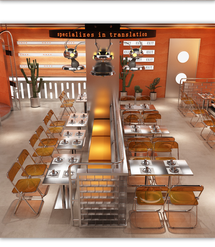 Обеденная комбинация стола и стульев для ресторанов барбекю и хот-пота, стальные кресла, индустриальный стиль, западный ресторан, кафе, чайный ресторан