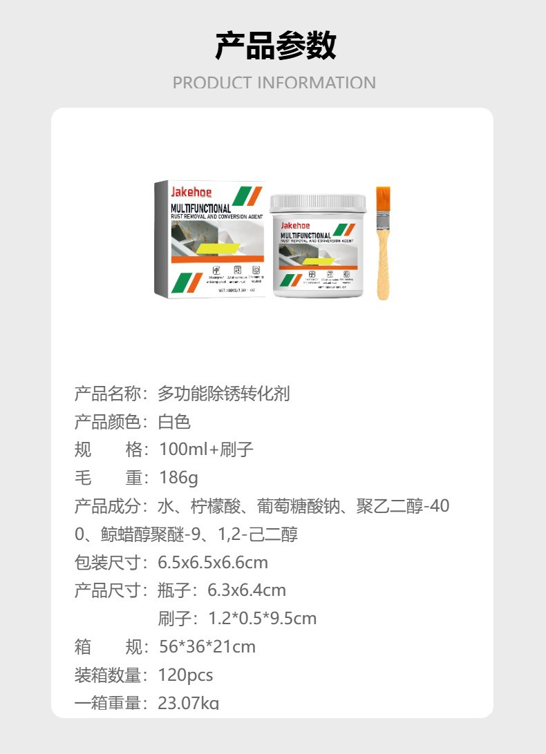 Многофункциональный агент для удаления ржавчины Jakehoe, антикоррозийный грунт для железной крыши