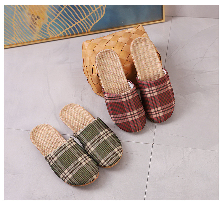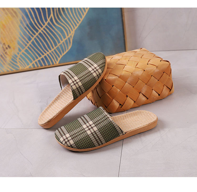 Новые летние мужские и женские льняные клетчатые корейские стиль шифон мягкие подошвы стираемые домашние indoor сандалии и тапочки для внешней носки